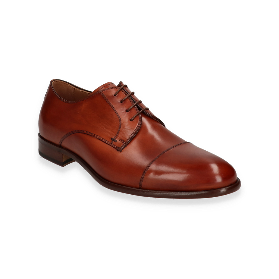 Preis inkl. MwSt.Die Antony van Diyck Schnürschuhe für Herren präsentieren sich in einem eleganten Mittelbraun, das zeitlose Raffinesse ausstrahlt. Das glatte Lederoberteil verleiht dem Schuh eine klassische Ästhetik, während die sorgfältige Verarbeitung und die feinen Nähte die hochwertige Handwerkskunst unterstreichen. Der dezente 2,5 cm hohe Absatz bietet einen Hauch von Erhöhung und Komfort, ideal für formelle Anlässe oder den stilvollen Alltag.