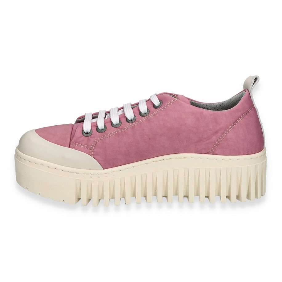Preis inkl. MwSt.Der BRIGHTON Sneaker von Art in Dunkelrosa vereint Stil und Komfort auf eindrucksvolle Weise. Das Obermaterial aus Leder und Textil sorgt für eine elegante und zugleich lässige Optik, die durch die weiße Sohle und die kontrastierenden Schnürsenkel perfekt ergänzt wird. Der markante Plateauabsatz von 3,5 cm und die 5 cm hohe Ferse verleihen dem Schuh eine moderne Silhouette, die sowohl im Alltag als auch zu besonderen Anlässen überzeugt. Die Textilfütterung bietet zusätzlichen Komfort, während das dezente Logo-Detail an der Seite dem Design eine besondere Note verleiht.