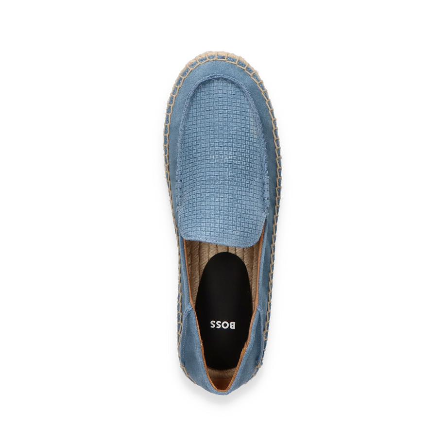 Der MADEIRA Slipper von BOSS in Hellblau vereint stilvolle Eleganz mit legerem Komfort. Das Obermaterial aus hochwertigem Leder verleiht dem Schuh eine luxuriöse Optik, während die dezente Struktur auf dem Vorderblatt für einen modernen Touch sorgt. Die sorgfältig gearbeitete Naht und die natürliche Jute-Umrandung unterstreichen das handwerkliche Können und machen diesen Slipper zu einem idealen Begleiter für Herren, die Wert auf Stil und Qualität legen.