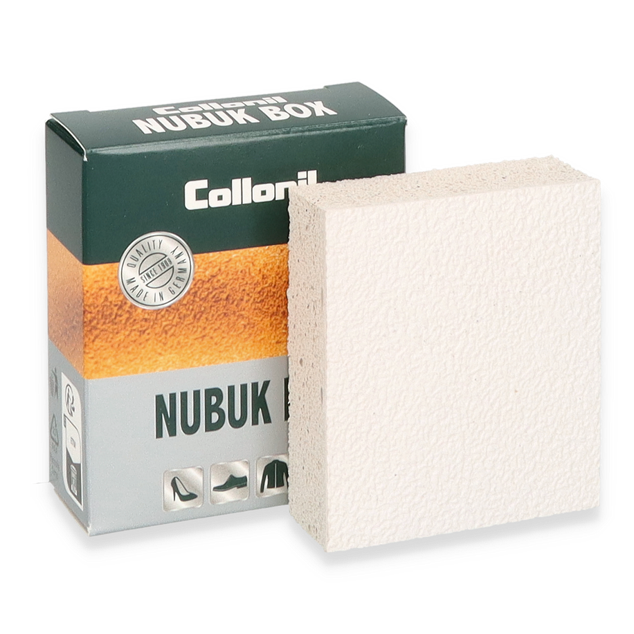 Praktischer und schonender Trockenreiniger aus Moosgummi mit Kreppauflage für alle Rauleder.