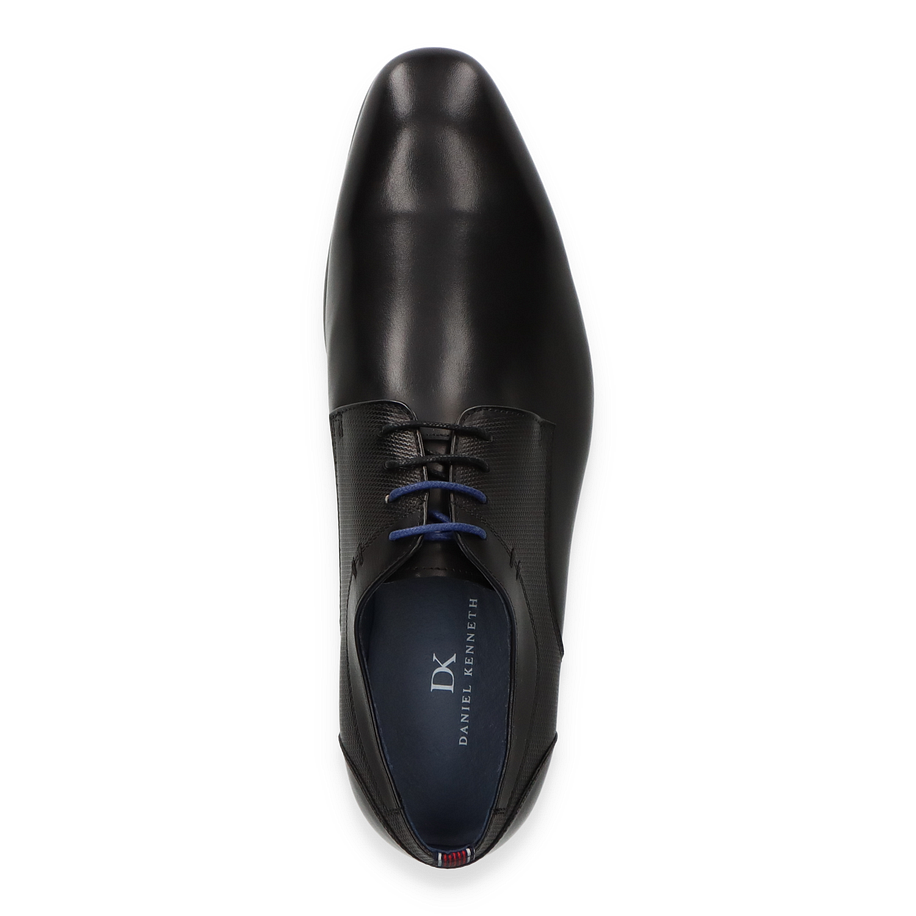 Preis inkl. MwSt.Die eleganten Schnürschuhe von Daniel Kenneth in klassischem Schwarz vereinen zeitlose Ästhetik mit moderner Raffinesse. Das Obermaterial aus hochwertigem Leder verleiht den Schuhen einen luxuriösen Glanz und sorgt für eine langlebige Qualität. Die feinen Details, wie die dezenten blauen Schnürsenkel, setzen stilvolle Akzente und unterstreichen das edle Design. Die Schuhe sind ideal für Herren, die Wert auf Stil und Komfort legen und sich sowohl im Büro als auch bei besonderen Anlässen von ihrer besten Seite zeigen möchten.
