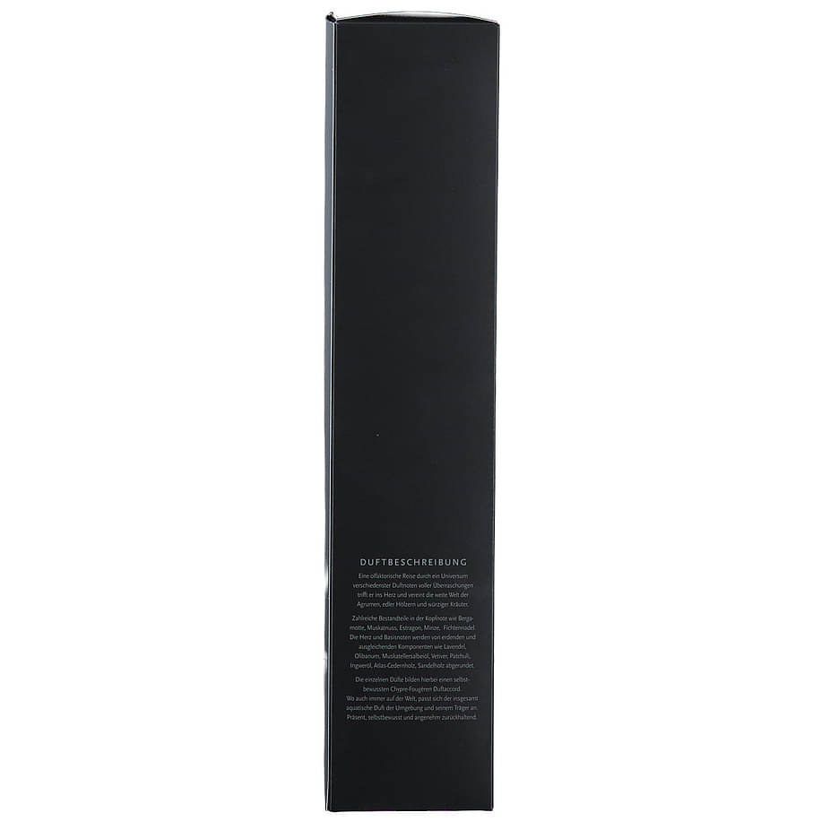Die einzelnen Düfte bilden hierbei einen selbstbewussten Chypre-Fougèren Duftaccord. Wo auch immer auf der Welt, passt sich der insgesamt aquatische Duft der Umgebung und seinem Träger an. Präsent, selbstbewusst und angenehm zurückhaltend.