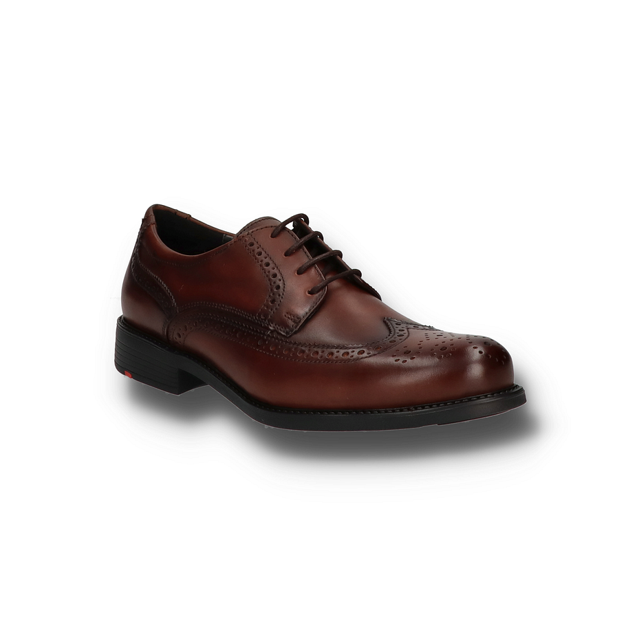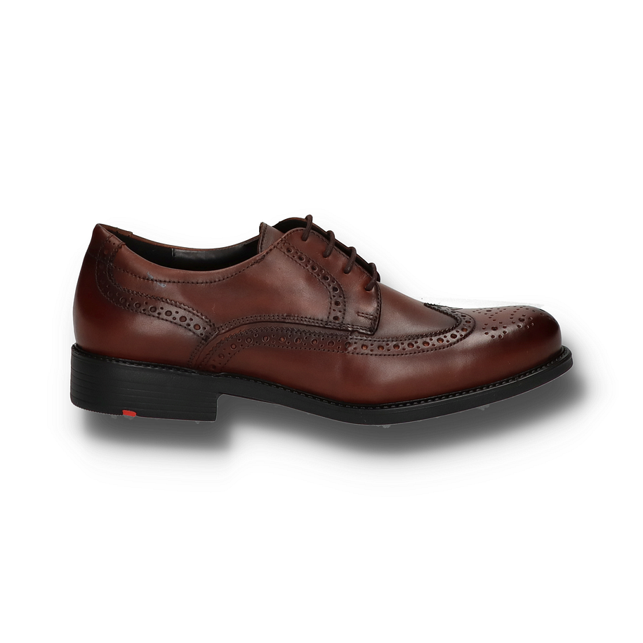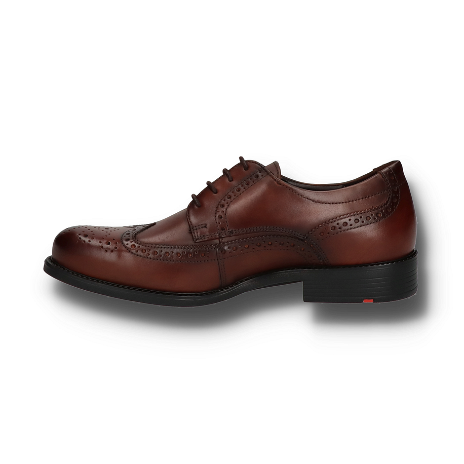 Der Lloyd TAMPICO Schnürschuh für Herren präsentiert sich in einem eleganten dunkelbraunen Leder mit einer klassischen Budapester-Optik. Die feinen Lochmuster und die sorgfältig gearbeiteten Nähte verleihen dem Schuh eine zeitlose Eleganz, die sowohl im Büro als auch bei besonderen Anlässen überzeugt. Die robuste Gummisohle und der 3 cm hohe Absatz sorgen für einen sicheren und komfortablen Auftritt. Die hochwertigen Materialien des Lloyd TAMPICO Schnürschuhs bieten höchsten Tragekomfort. Das Obermaterial, Innenmaterial und die Innensohle bestehen aus feinstem Leder, das für Atmungsaktivität und Langlebigkeit sorgt. Das Vario-Fußbett passt sich individuell an den Fuß an und bietet zusätzlichen Komfort. Dieser Schnürschuh ist die perfekte Wahl für Herren, die Wert auf Stil und Qualität legen.