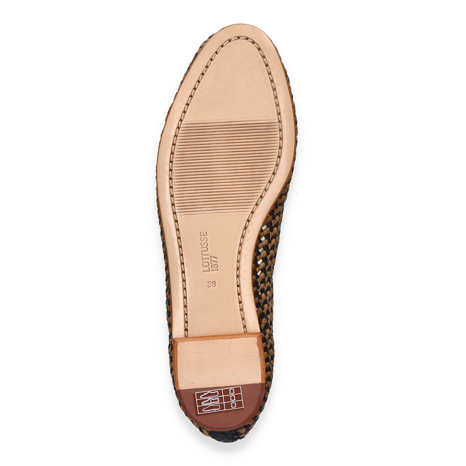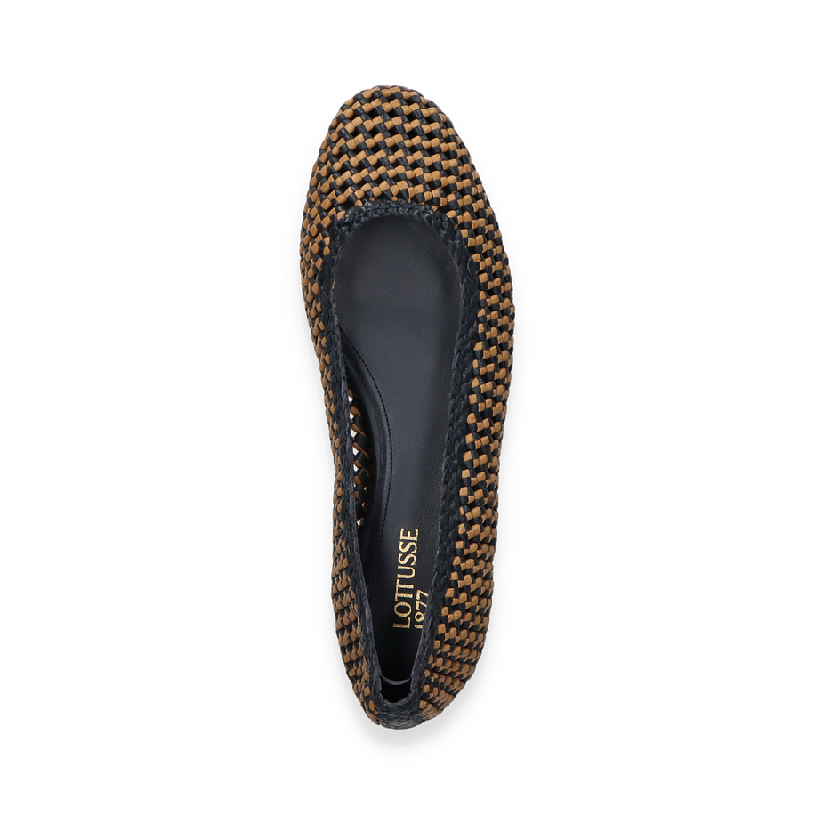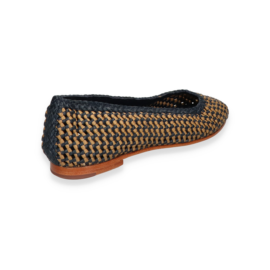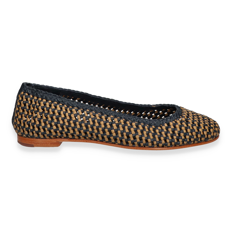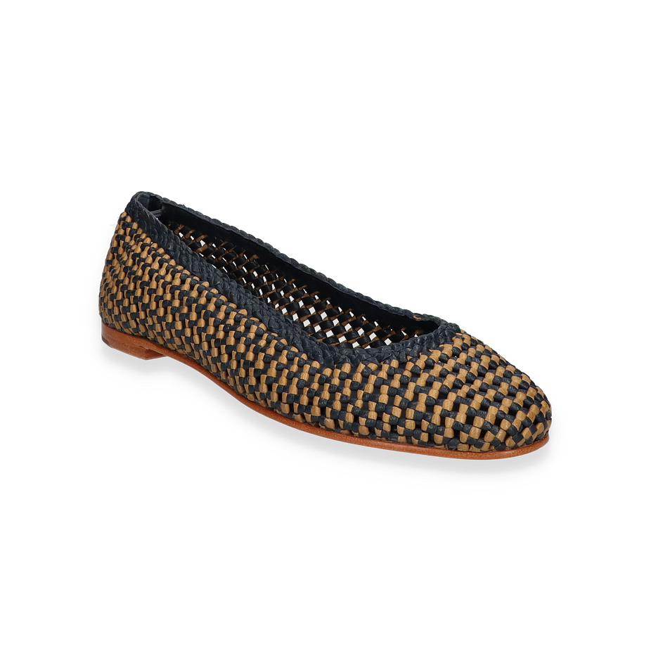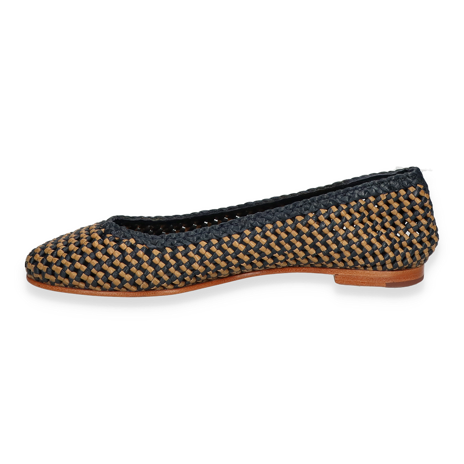 Preis inkl. MwSt.Die Lottusse DELICE Ballerinas für Damen präsentieren sich in einem eleganten Blau/Beige-Farbton, der durch ein kunstvolles Flechtmuster besticht. Diese Schuhe vereinen Stil und Komfort und sind ideal für anspruchsvolle Anlässe oder den täglichen Gebrauch. Das Design strahlt eine subtile Raffinesse aus, die durch die sorgfältige Verarbeitung und die hochwertigen Materialien unterstrichen wird. Die flache Silhouette und der dezente Absatz von 1 cm sorgen für einen femininen und zugleich bequemen Auftritt.