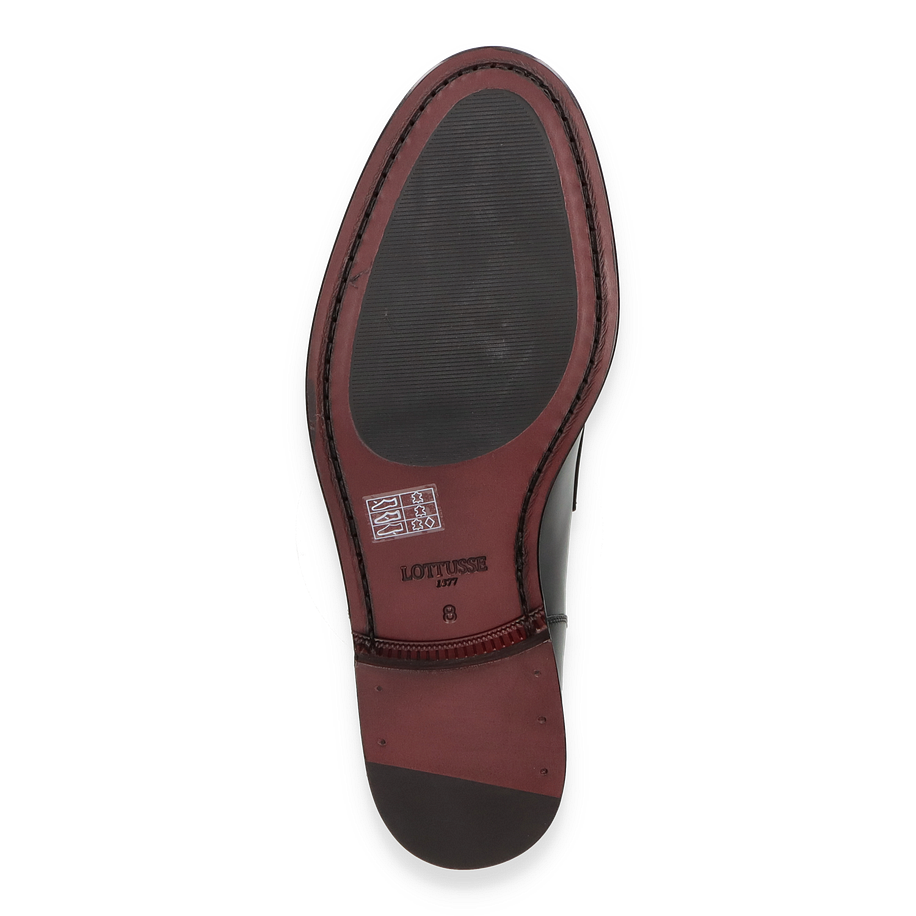 Entdecken Sie den eleganten Lottusse Slipper für Herren in klassischem Schwarz. Dieser Schuh besticht durch sein zeitloses Design und die hochwertige Verarbeitung. Das glatte Lederoberteil verleiht dem Slipper eine raffinierte Optik, während die sorgfältige Nahtführung und die dezente Verzierung am Rist für subtile Akzente sorgen. Die schlanke Silhouette und der niedrige Absatz von 2 cm machen diesen Schuh zu einem idealen Begleiter für formelle Anlässe und den stilvollen Alltag.