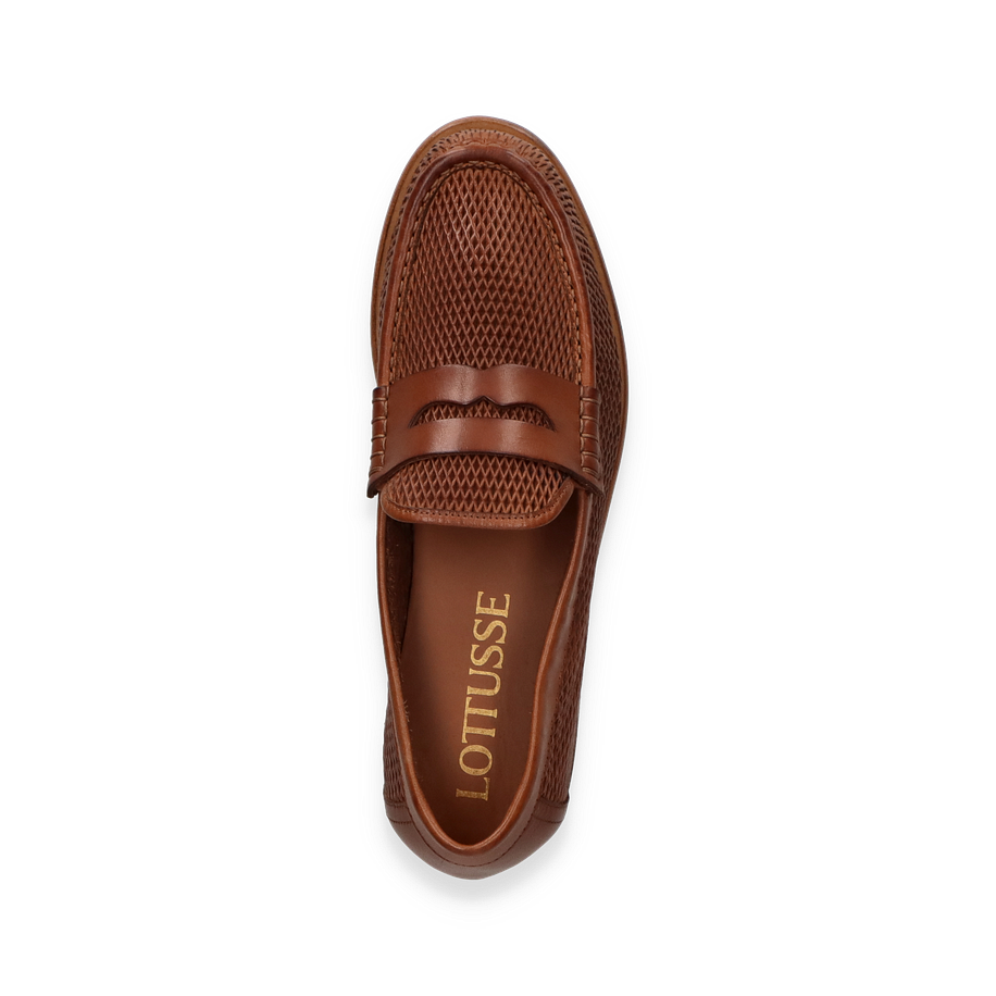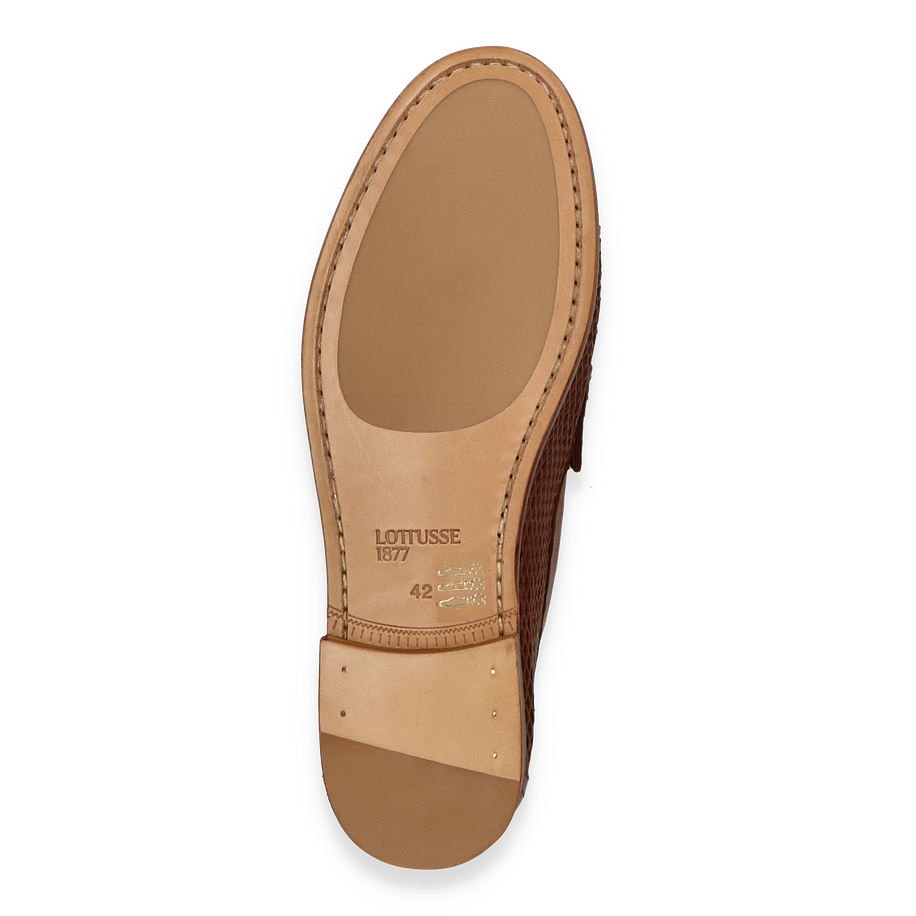 Preis inkl. MwSt.Der Lottusse Slipper in Mittelbraun ist ein eleganter Begleiter für Herren, der durch sein raffiniertes Design besticht. Die kunstvolle Flechtstruktur des Obermaterials verleiht dem Schuh eine einzigartige Optik und sorgt gleichzeitig für Atmungsaktivität. Der dezente Absatz von 2 cm und die klassische Silhouette machen diesen Slipper zu einem zeitlosen Stück, das sowohl zu formellen als auch zu legeren Anlässen passt.
