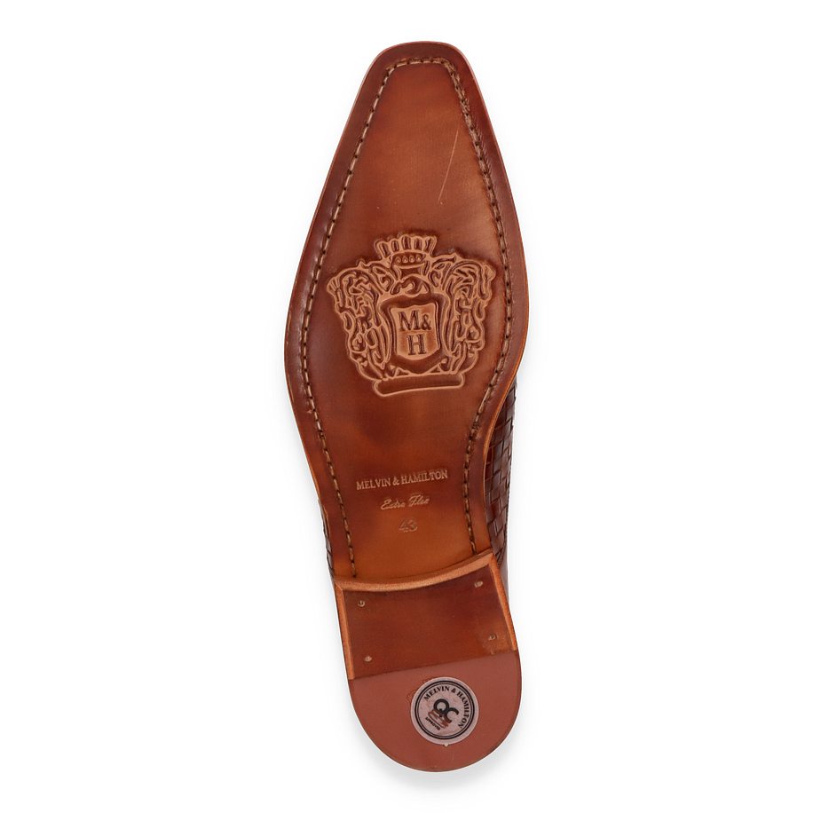 Preis inkl. MwSt.Entdecken Sie den exquisiten DYLAN Schnürschuh von Melvin & Hamilton, ein Meisterwerk für Herren in elegantem Mittelbraun. Der Schuh besticht durch sein kunstvolles, geflochtenes Lederdesign, das sowohl Raffinesse als auch Handwerkskunst verkörpert. Die glatte Oberfläche und die sorgfältige Verarbeitung machen diesen Schuh zu einem stilvollen Begleiter für formelle Anlässe oder den anspruchsvollen Alltag. Die klassische Schnürung und die dezente Absatzhöhe von 2,5 cm unterstreichen die zeitlose Eleganz dieses Modells.