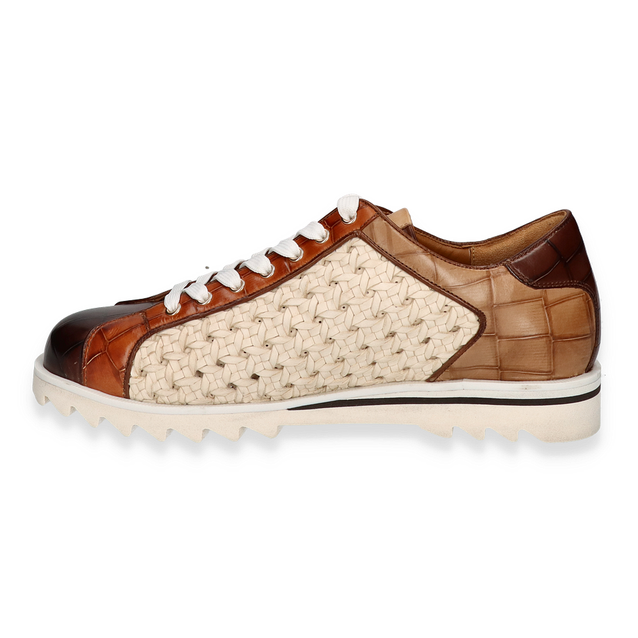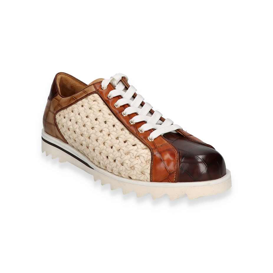 Preis inkl. MwSt.Entdecken Sie den HADRIAN Schnürschuh von Melvin&Hamilton, ein Meisterwerk der Handwerkskunst für Herren. Dieses Modell besticht durch seine einzigartige Kombination aus Beige und Bunt, die durch das geflochtene Lederdesign hervorgehoben wird. Die kontrastierenden Brauntöne verleihen dem Schuh eine elegante und zugleich moderne Note. Die weiße Sohle und die Schnürsenkel setzen frische Akzente, während die strukturierte Gummisohle für einen sicheren Halt sorgt.