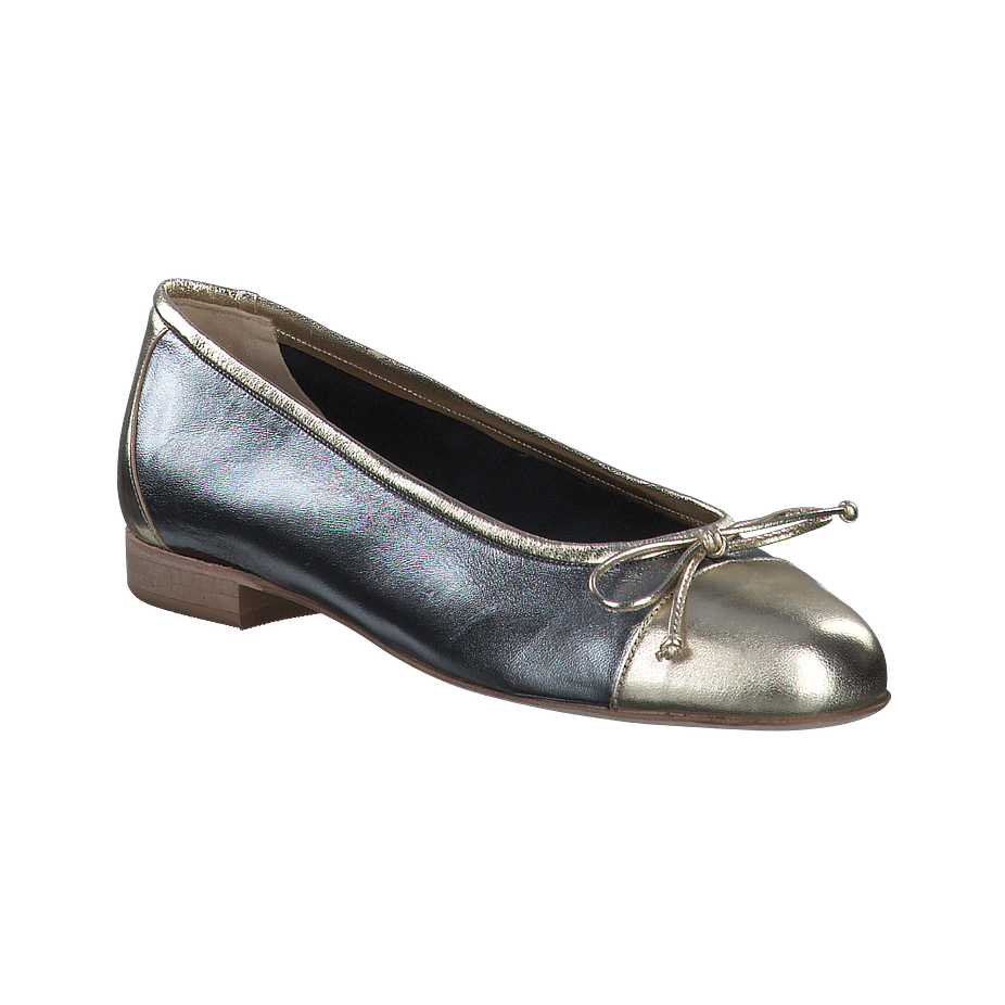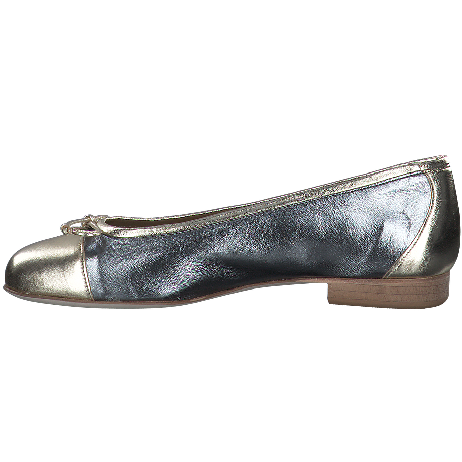 Artikelnr.: 103901692712 Material: Leder Innenfutter: Leder Sohle: Ledersohle Absatzhöhe: ca. 1,5 cm Farbe: Gold/Silber