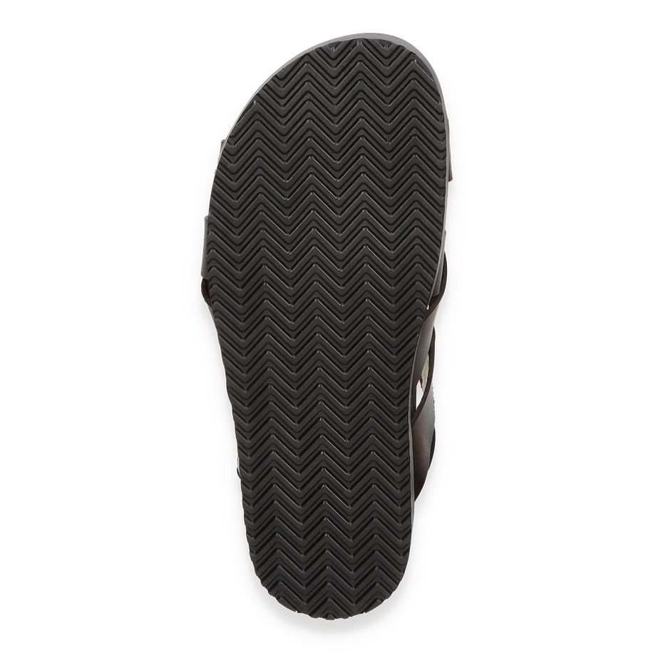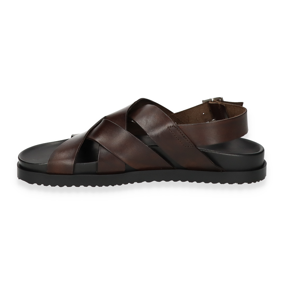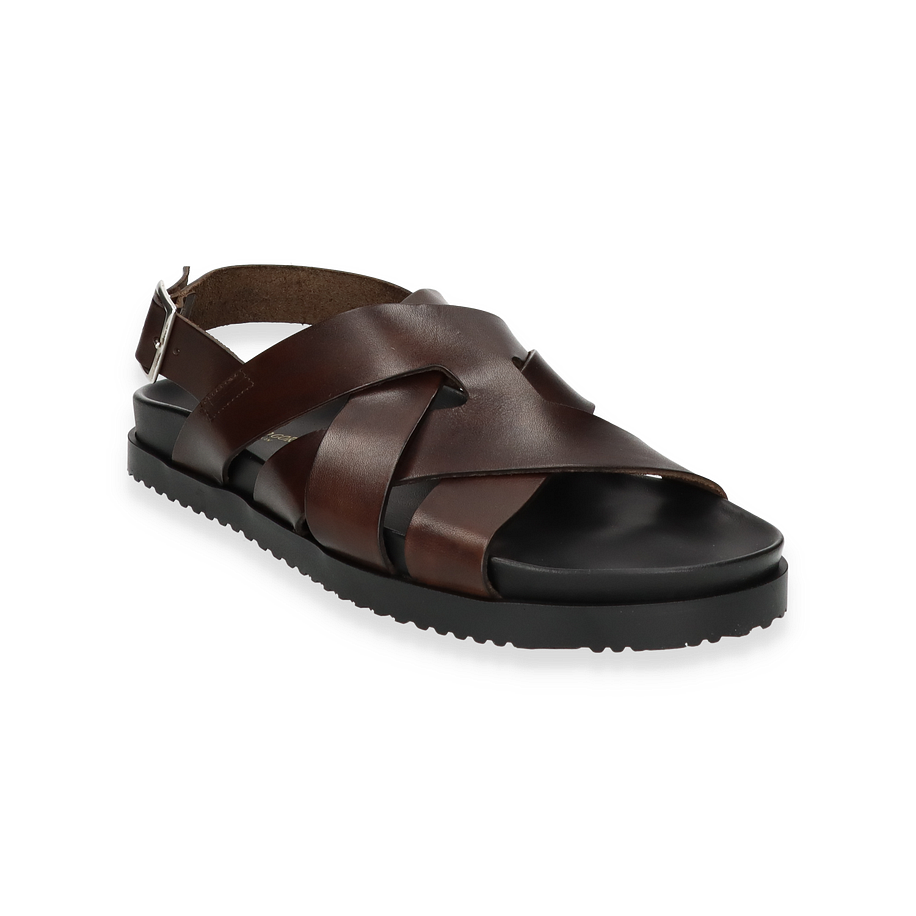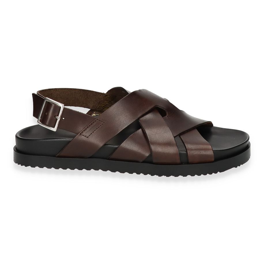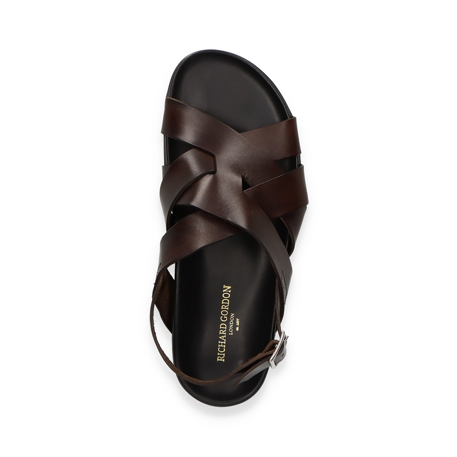 Preis inkl. MwSt.Entdecken Sie die eleganten Sandalen für Herren von Richard Gordon in einem tiefen Dunkelbraun. Diese Sandalen bestechen durch ihr raffiniertes Design mit überkreuzten Riemen, die aus hochwertigem Leder gefertigt sind. Die robuste Schnalle sorgt für eine individuelle Passform und verleiht dem Schuh eine klassische Note. Der flache Absatz von 3 cm bietet optimalen Komfort, während die rutschfeste Gummisohle für sicheren Halt sorgt.