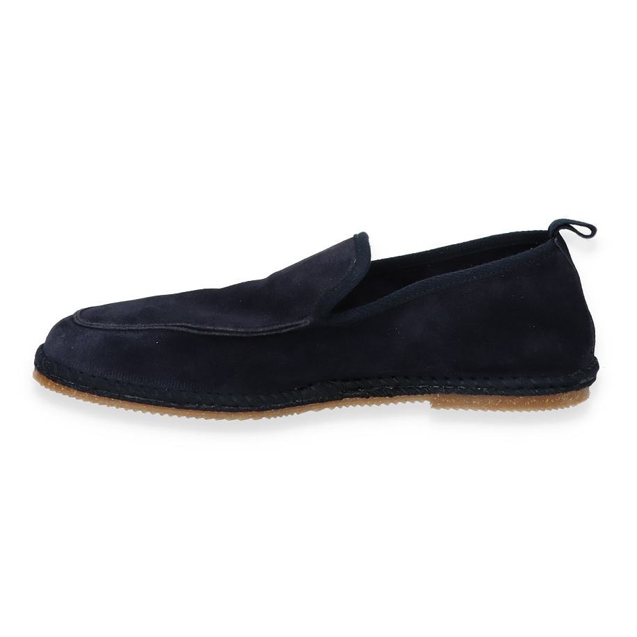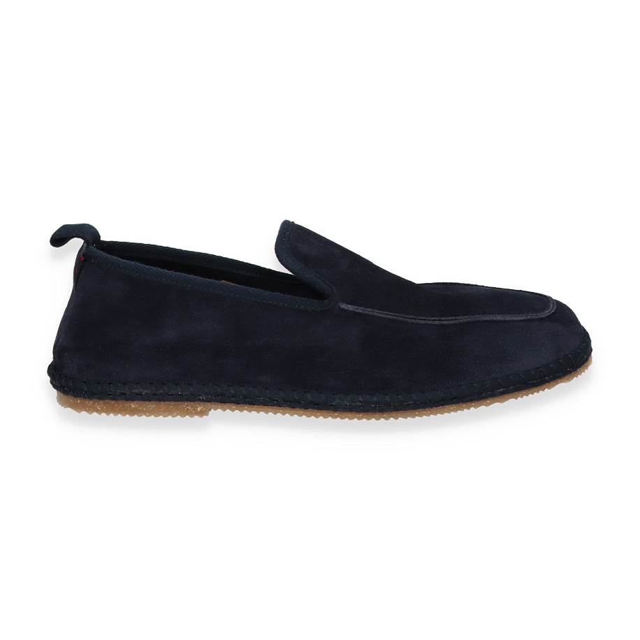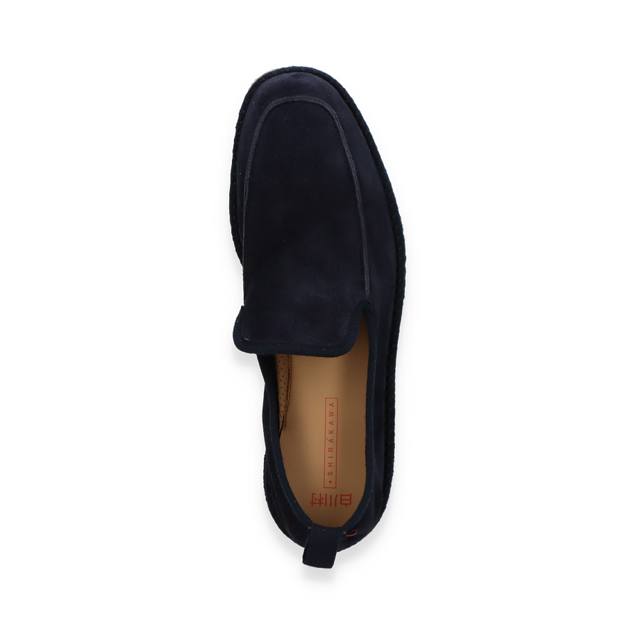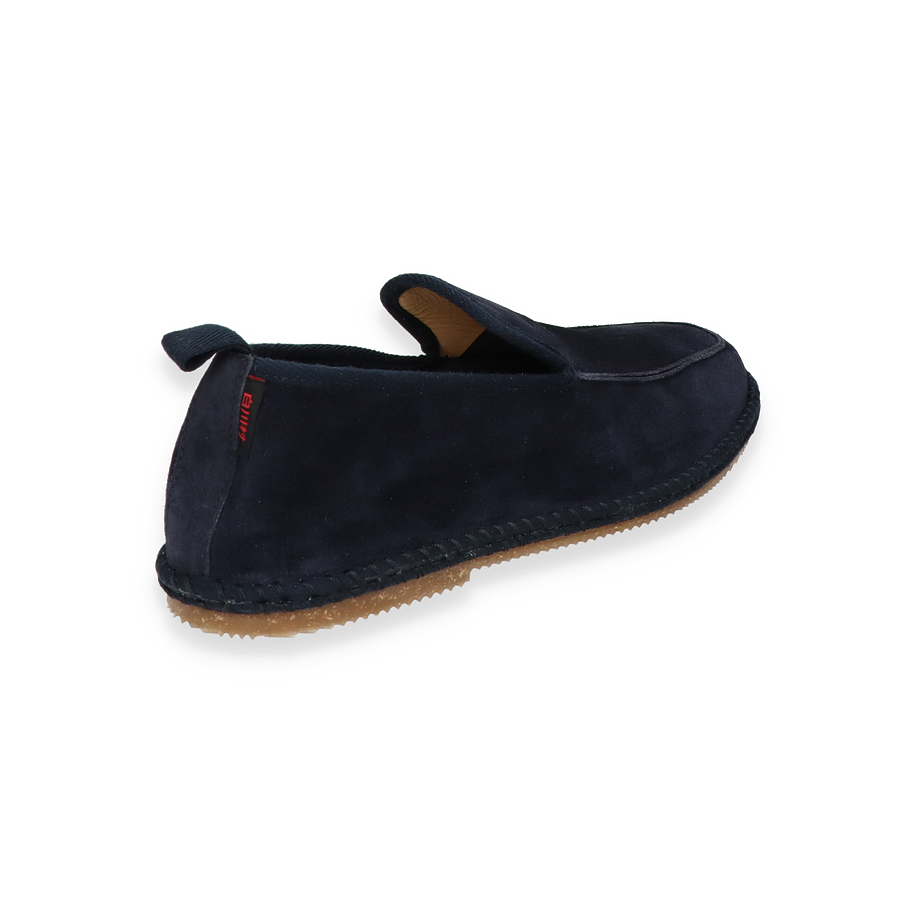Preis inkl. MwSt.Entdecken Sie den eleganten Slipper von Shirakawa in einem tiefen Dunkelblau, der stilvolle Schlichtheit mit hochwertiger Verarbeitung vereint. Der Slipper für Herren besticht durch sein minimalistisches Design und die sorgfältige Handwerkskunst, die in jedem Detail sichtbar ist. Die glatte Lederoberfläche verleiht dem Schuh eine luxuriöse Note, während die subtile Nahtführung für einen modernen Look sorgt. Die Gummisohle bietet nicht nur hervorragenden Halt, sondern ergänzt auch das zeitlose Design des Schuhs.