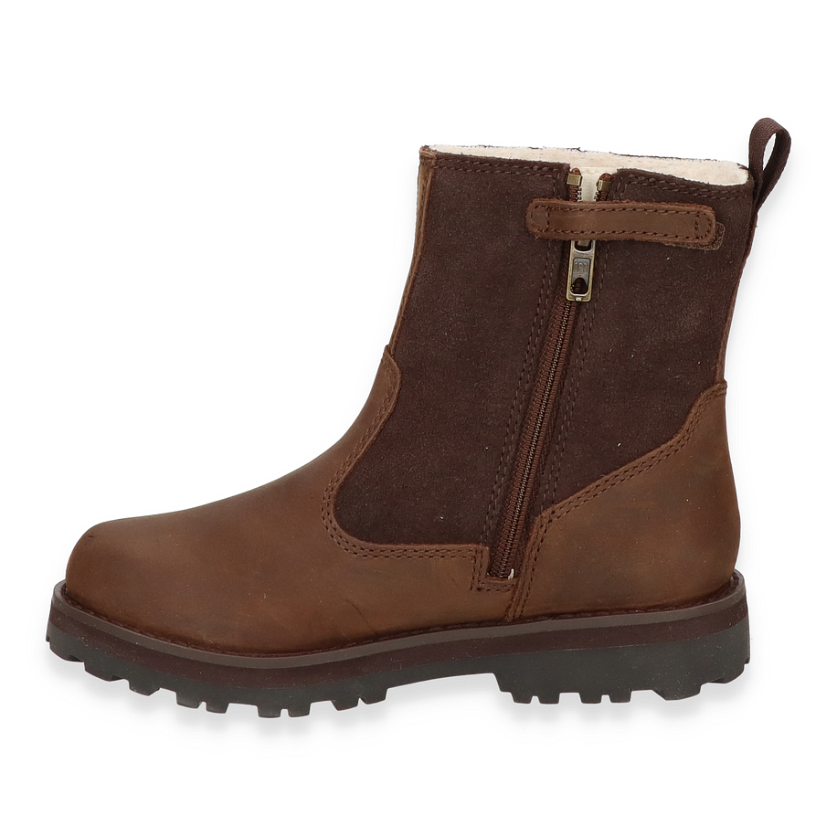 Der Timberland COURMA KID Boot in Dunkelbraun präsentiert sich als stilvoller und robuster Begleiter für Kinder. Das Design kombiniert hochwertiges Leder mit einem klassischen Schnitt, der sowohl modern als auch zeitlos wirkt. Die dunkle Farbgebung verleiht dem Schuh eine elegante Note, während die markante Sohle für einen sicheren Halt sorgt. Der Boot ist ideal für den Alltag und bietet Komfort und Stil in einem.