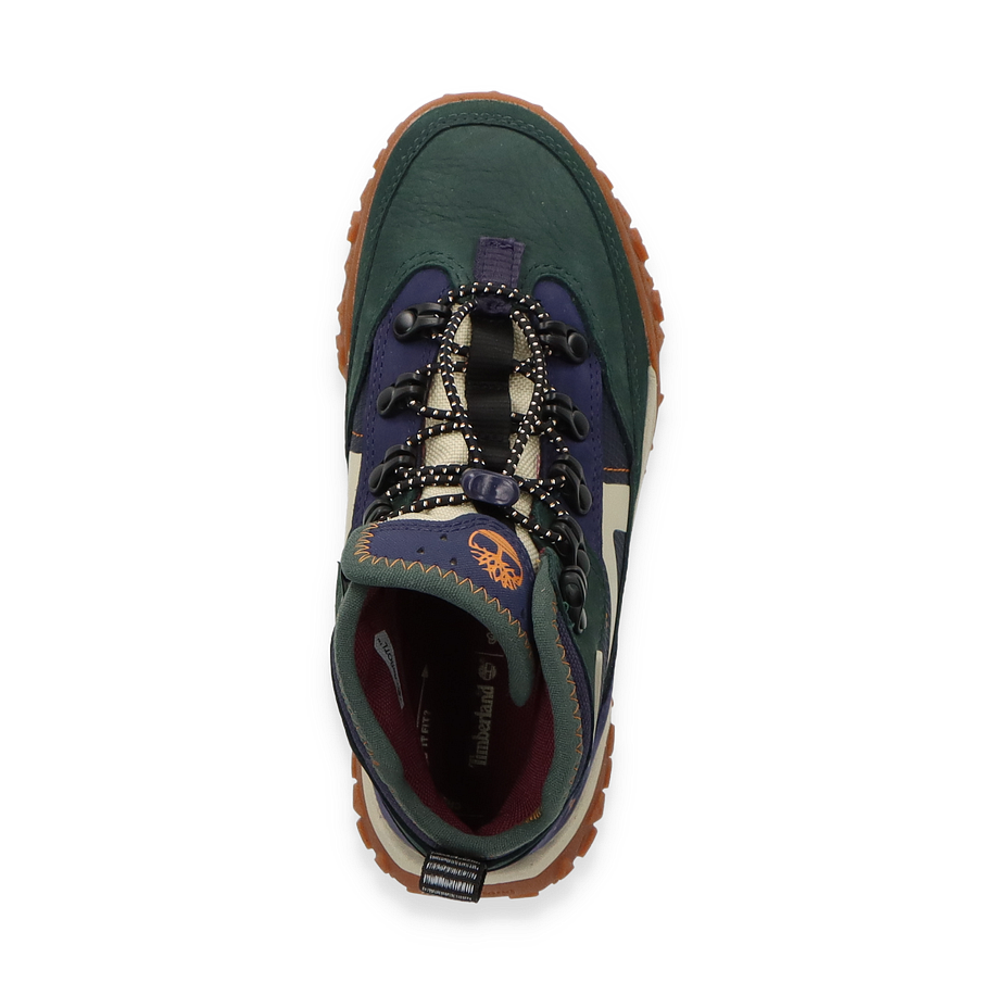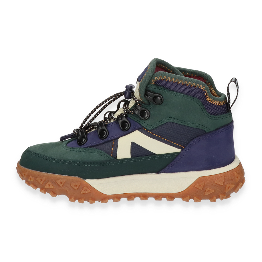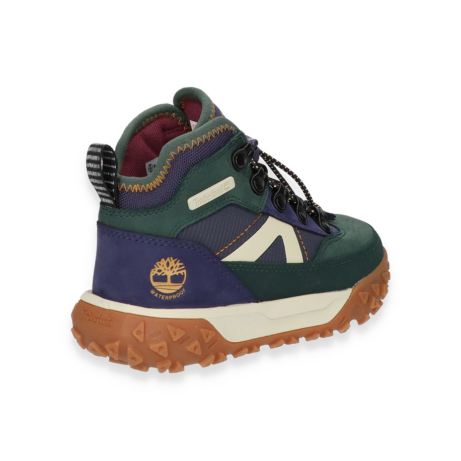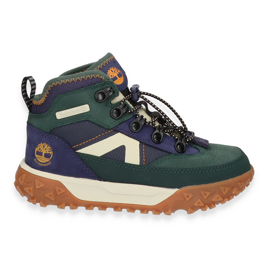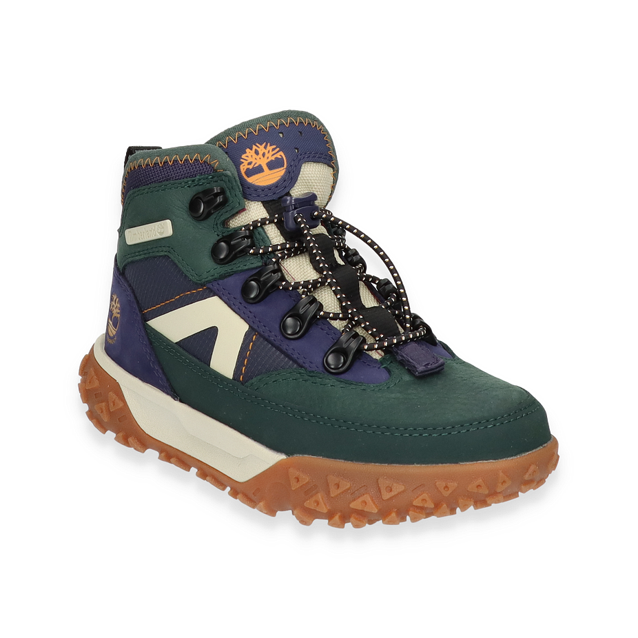 Entdecken Sie die GREENSTRIDE MOTION Boots von Timberland, ein stilvolles und funktionales Schuhwerk für Kinder. Diese Boots präsentieren sich in einem lebendigen Blau/Bunt-Design, das durch die Kombination von Leder und Textil im Obermaterial besticht. Die robuste Gummisohle bietet hervorragende Traktion, während die Textil-Innensohle und das Futter für optimalen Komfort sorgen. Die markanten Schnürsenkel und das ikonische Timberland-Logo verleihen diesen Boots einen unverwechselbaren Look, der sowohl für Abenteuer im Freien als auch für den Alltag geeignet ist.