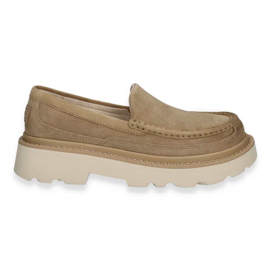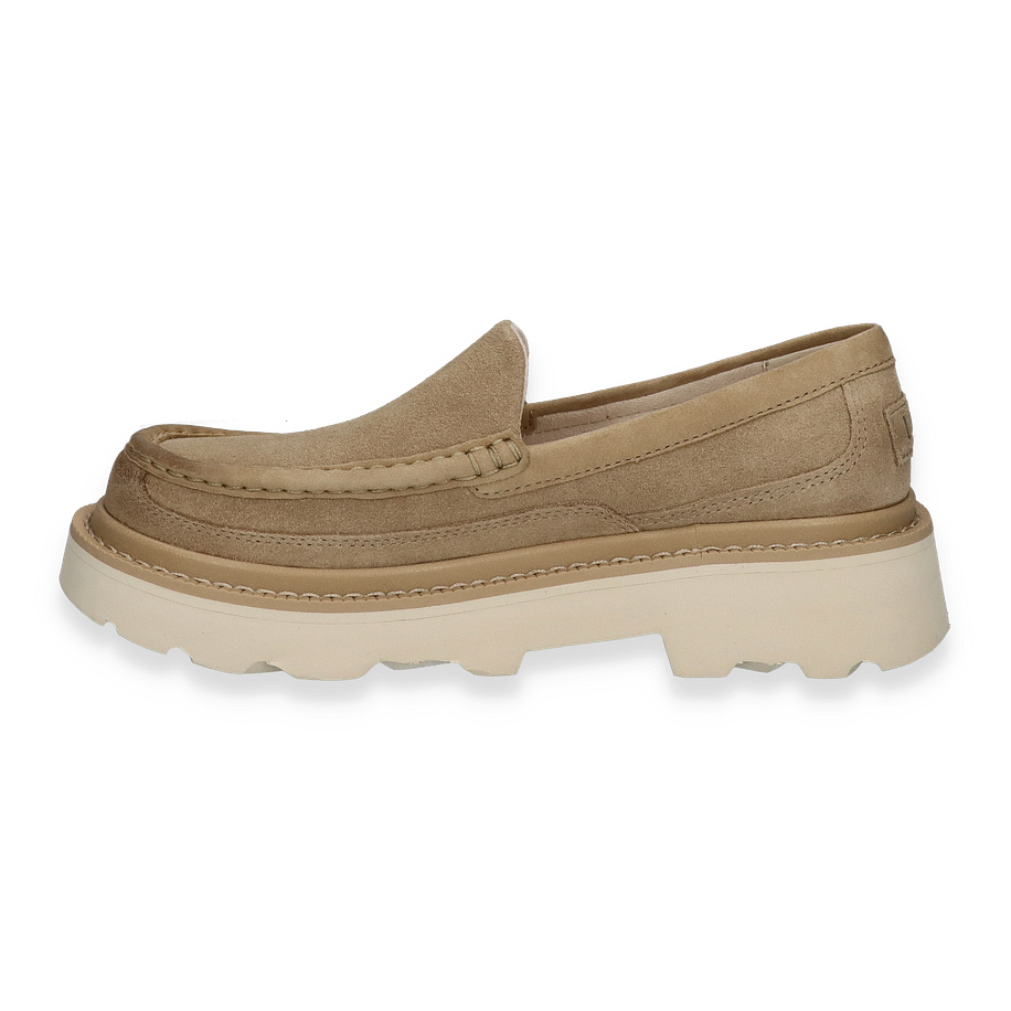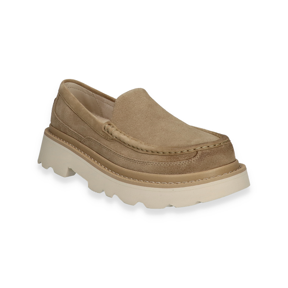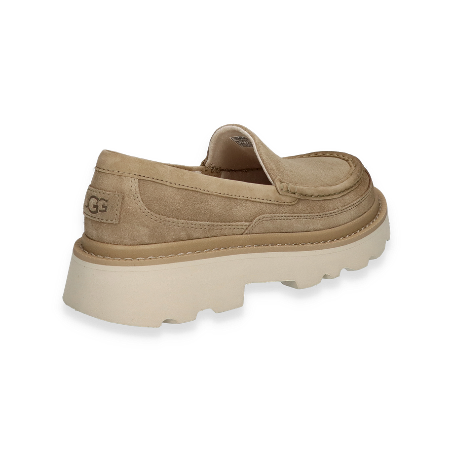 Der ASCOT Slipper von UGG in Beige vereint zeitlose Eleganz mit modernem Komfort. Das Obermaterial aus hochwertigem Leder verleiht dem Schuh eine edle Optik, während die dezente Farbgebung vielseitig kombinierbar ist. Der Slipper besticht durch seine klare Linienführung und das minimalistische Design, das sich perfekt für Herren eignet, die Wert auf Stil und Bequemlichkeit legen. Die robuste Gummisohle sorgt für einen sicheren Halt und unterstreicht die Langlebigkeit des Schuhs.