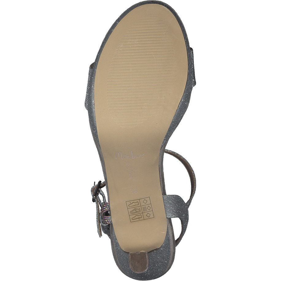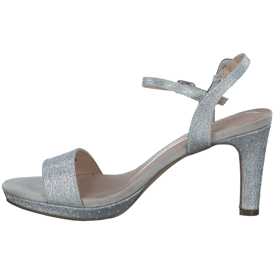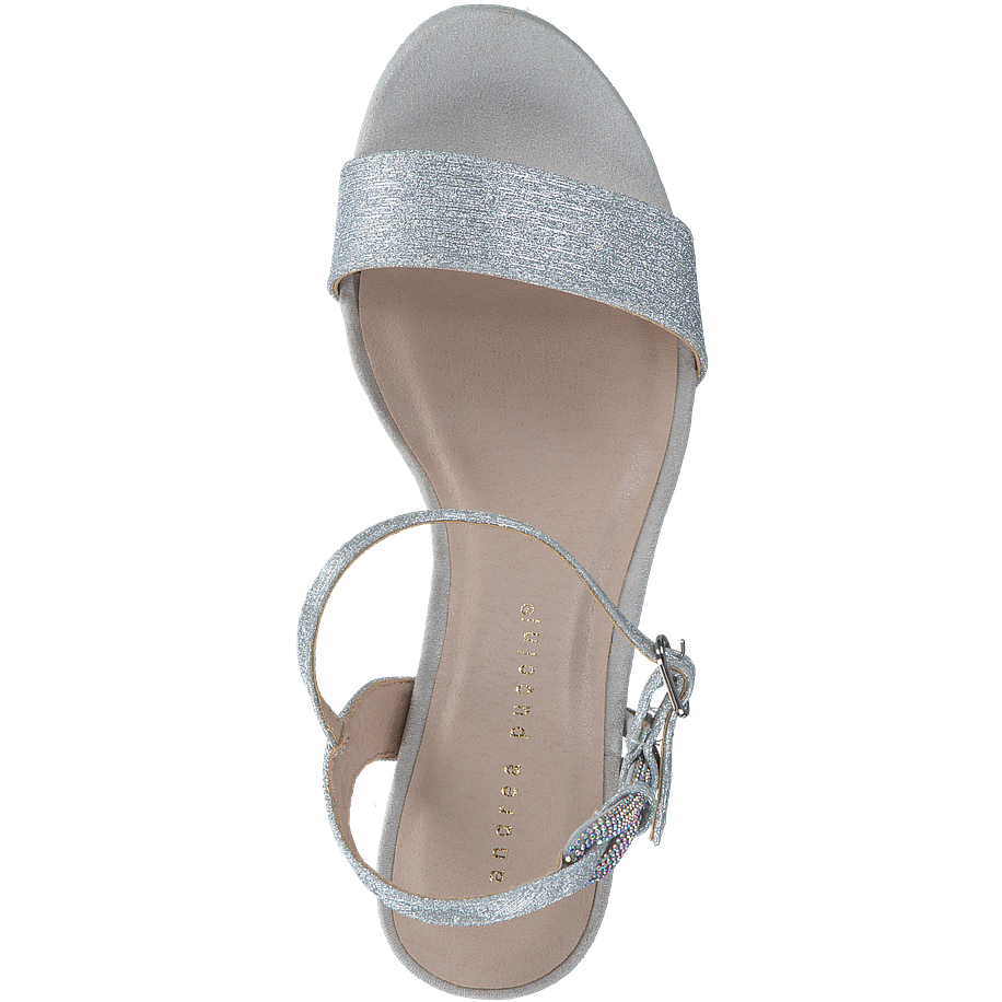 In einem strahlenden Silber kommen diese eleganten Andrea Puccini Absatz-Sandalen für Damen daher und sorgen damit für einen atemberaubenden Hingucker in jedem Outfit. Die schicken Damenschuhe sind schlicht geschnitten, verfügen aber über schimmernde Glitzersteinverzierungen an den Riemchen, die dem Modell einen aufregenden und glamourösen Charme verleihen. Die Riemchen lassen sich mit praktischen silberfarbenen Schnallen verstellen, sodass die Schuhe stets optimal sitzen und Sie bequem durch den Tag begleiten. Auf den mittelhohen schmalen Absätzen sind Sie überraschend komfortabel unterwegs und sehen dabei wunderbar feminin und elegant aus.