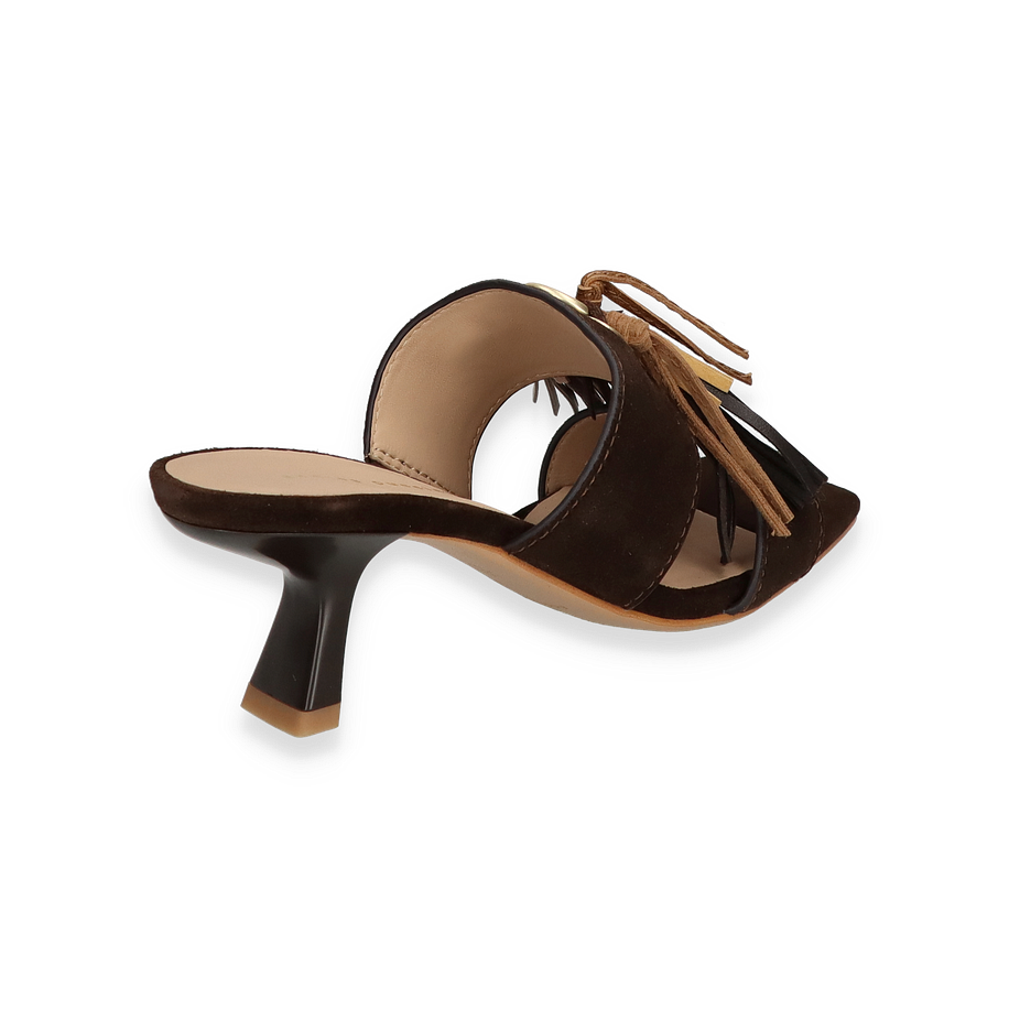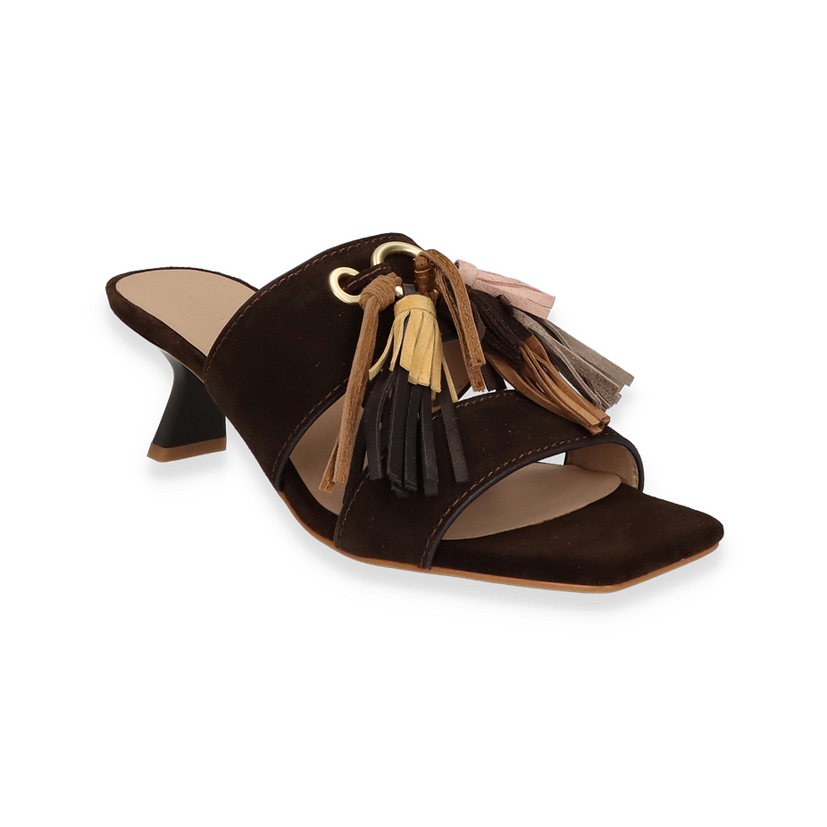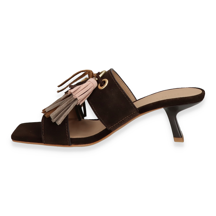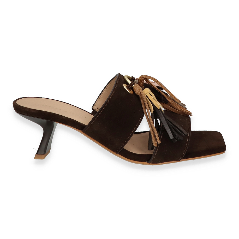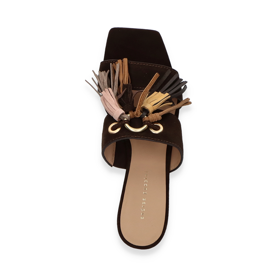 Preis inkl. MwSt.Entdecken Sie die eleganten Pantoletten von Andrea Puccini in einem edlen Dunkelbraun. Diese stilvollen Schuhe für Damen zeichnen sich durch ihre raffinierte Gestaltung mit dekorativen Quasten aus, die jedem Outfit einen Hauch von Raffinesse verleihen. Der 5 cm hohe Absatz sorgt für eine ansprechende Silhouette und bietet gleichzeitig optimalen Tragekomfort. Das hochwertige Leder als Obermaterial unterstreicht die luxuriöse Anmutung dieser Pantoletten.