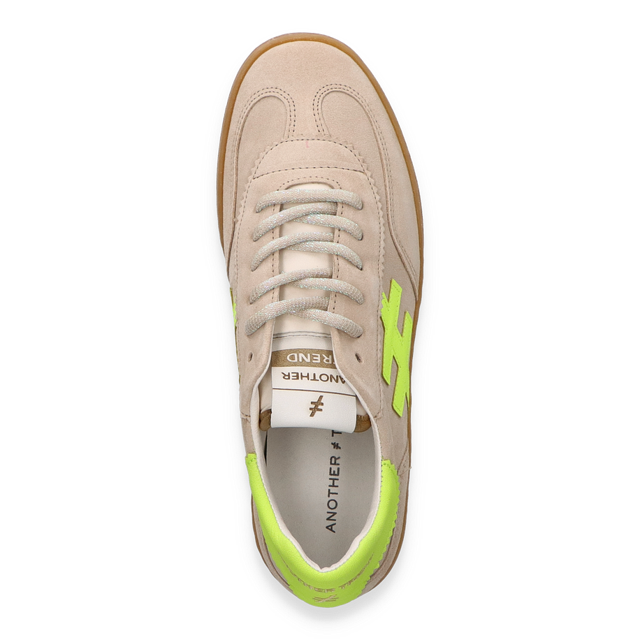 Preis inkl. MwSt.Entdecken Sie die stilvollen Sneaker für Damen von Another Trend in einem eleganten Beige-Ton. Diese Schuhe vereinen modisches Design mit einem Hauch von Sportlichkeit, unterstrichen durch auffällige neonfarbene Akzente. Die hochwertige Verarbeitung und das zeitlose Design machen sie zu einem vielseitigen Begleiter für verschiedene Anlässe. Der dezente 2,5 cm hohe Absatz sorgt für einen angenehmen Tragekomfort und eine feminine Silhouette.