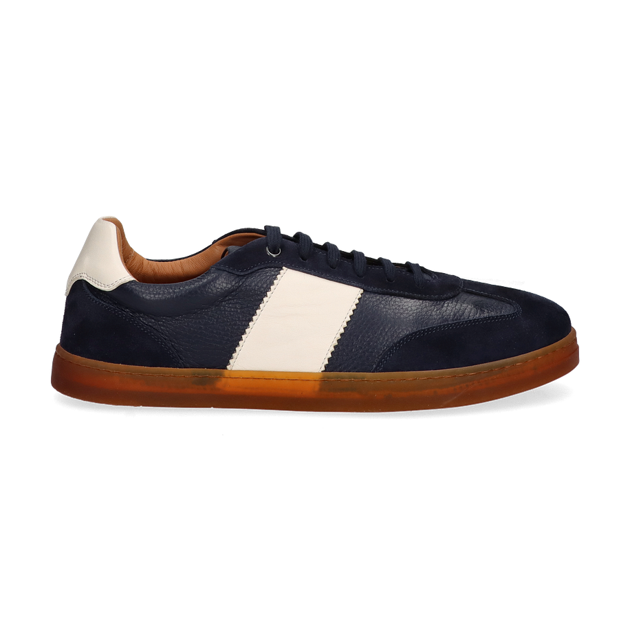 Preis inkl. MwSt.Der Antonio Maurizi Sneaker in elegantem Blau präsentiert sich mit einem stilvollen Design, das durch einen kontrastierenden weißen Streifen akzentuiert wird. Die sorgfältige Verarbeitung des Obermaterials aus hochwertigem Leder verleiht dem Schuh eine luxuriöse Ausstrahlung. Der dezente 2 cm hohe Absatz und die geschmackvolle Kombination aus Blau und Weiß machen diesen Sneaker zu einem vielseitigen Begleiter für Herren, der sowohl im Alltag als auch zu besonderen Anlässen überzeugt.