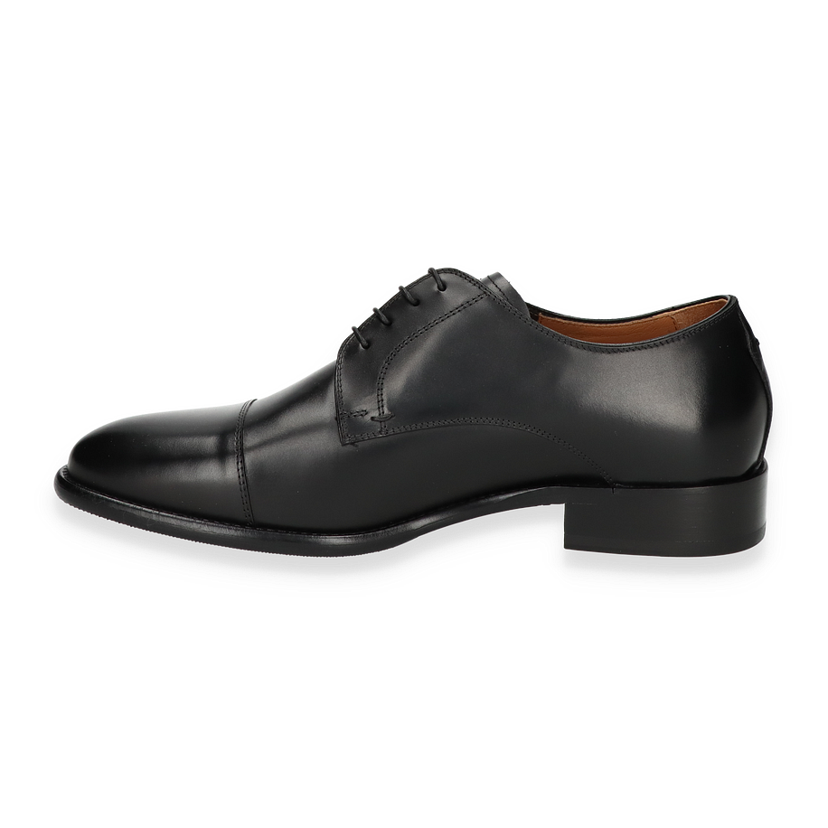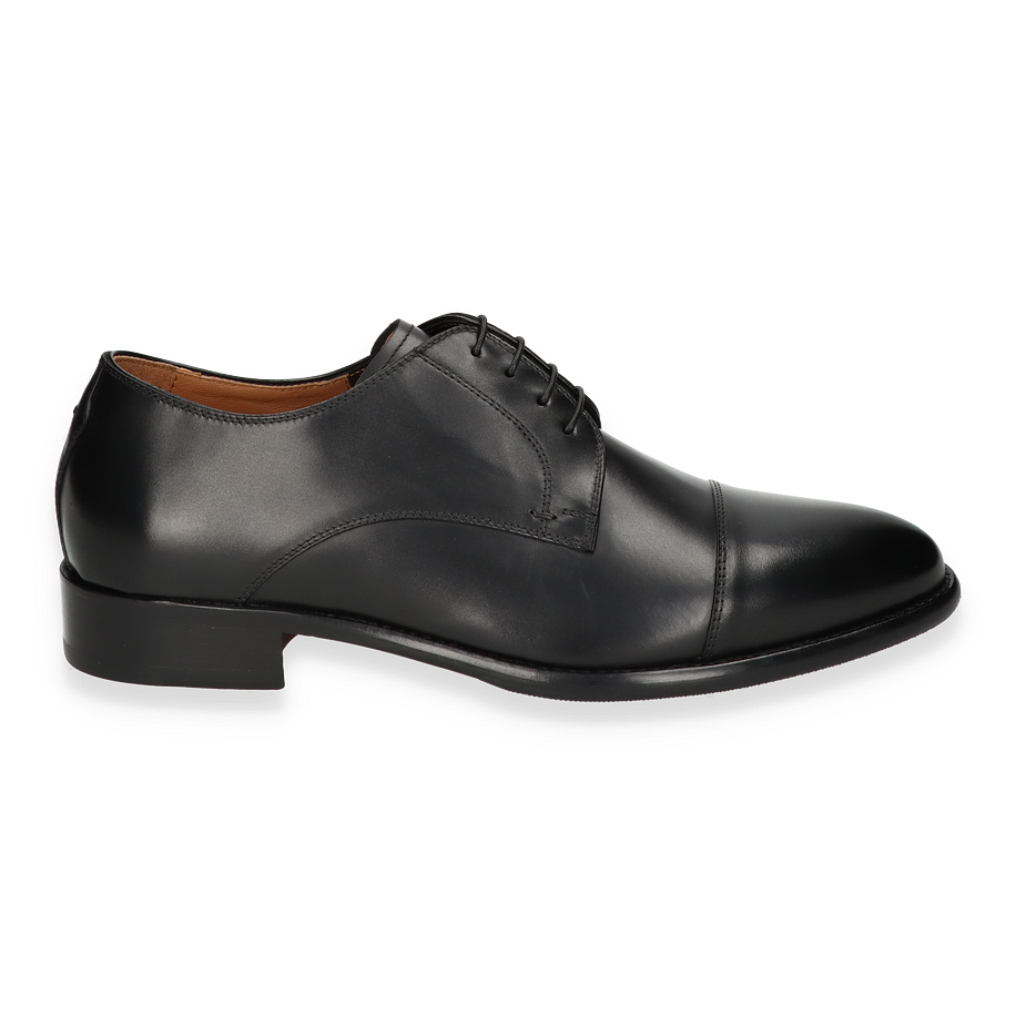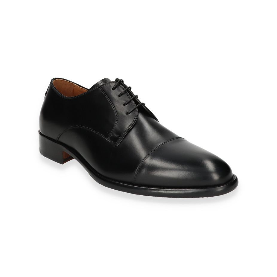 Die Schnürschuhe sind mit einem Leder-Innenmaterial versehen, das für ein angenehmes Tragegefühl sorgt. Die Innensohle aus Leder unterstützt den Fußkomfort zusätzlich. Die Kombination aus Leder und Gummi in der Sohle bietet eine langlebige und rutschfeste Basis. Mit einer Absatzhöhe von 2,5 cm bieten diese Schuhe eine dezente Erhöhung, die den Tragekomfort nicht beeinträchtigt. Perfekt für den anspruchsvollen Mann, der Wert auf Stil und Qualität legt.