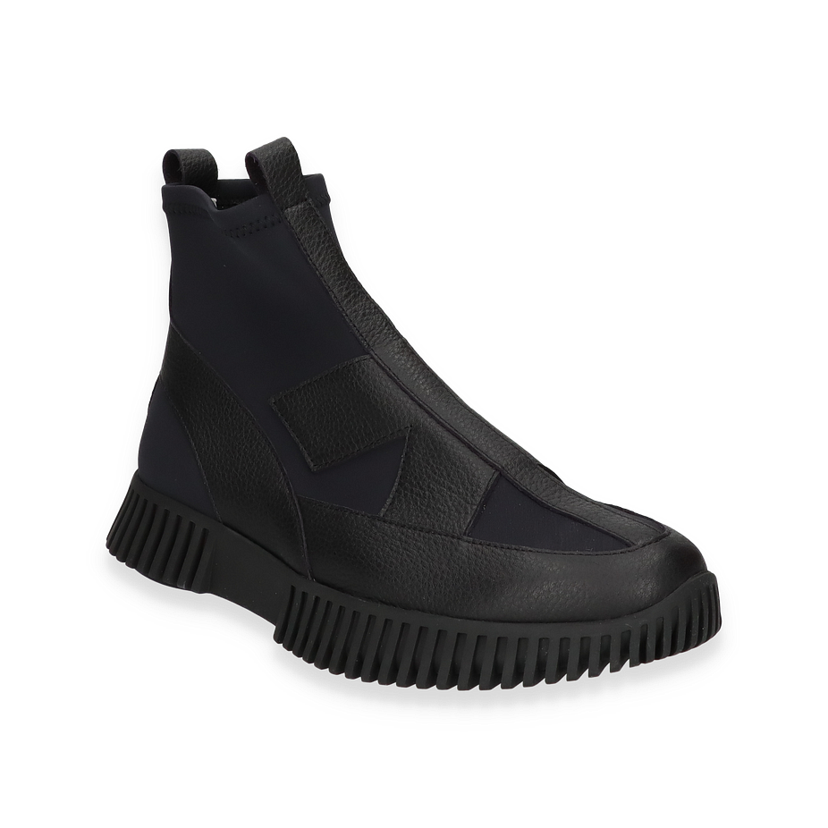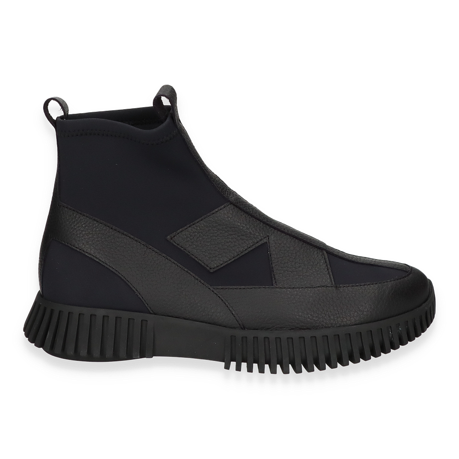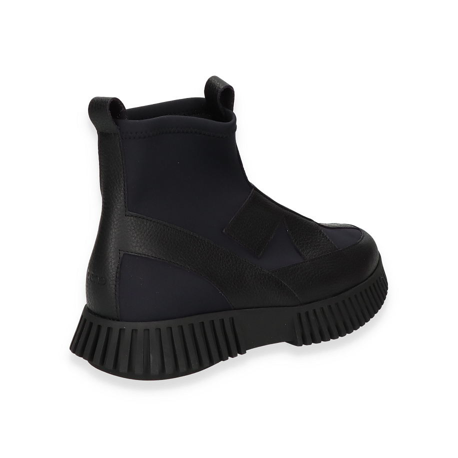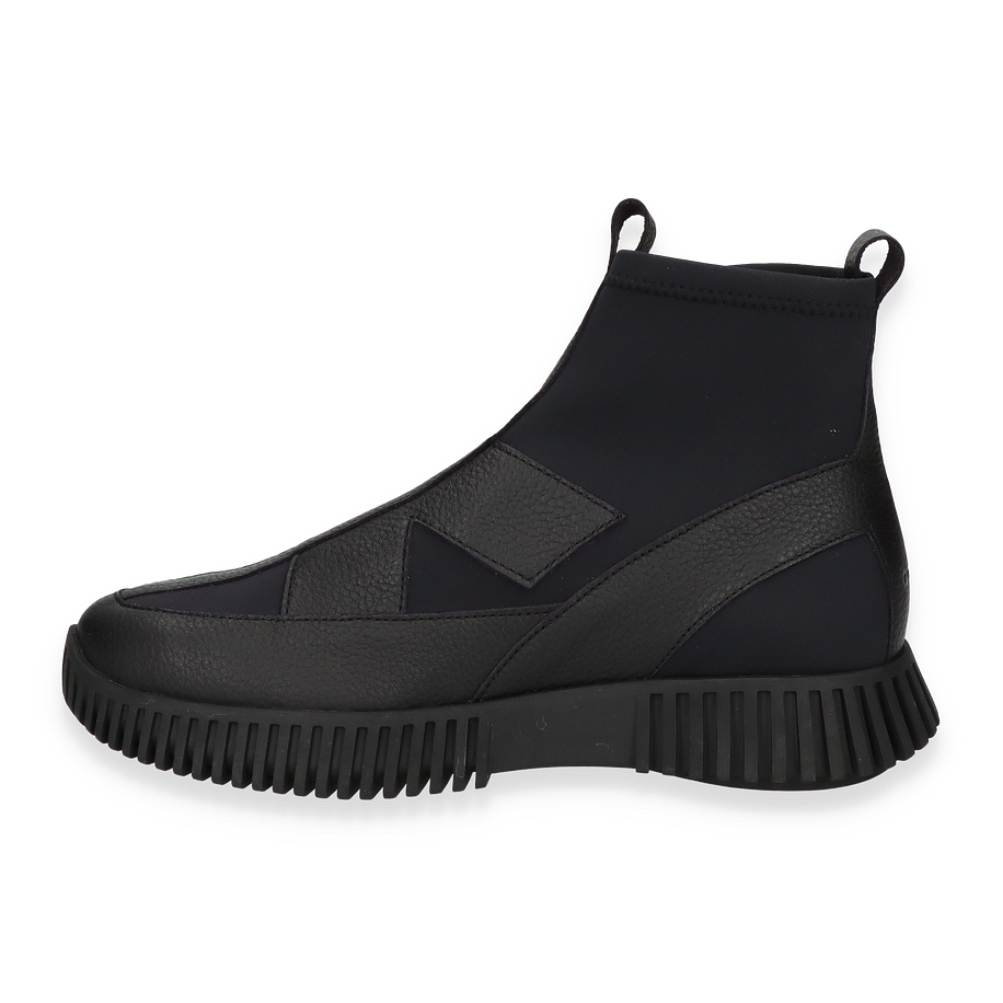 Die Arche HAVEKE Boots für Damen präsentieren sich in einem eleganten Schwarz, das durch die Kombination aus Textil und Leder eine raffinierte Optik erhält. Der moderne Schnitt und die markante Sohle verleihen dem Schuh einen urbanen und zugleich zeitlosen Charakter. Diese Boots sind ideal für stilbewusste Frauen, die Wert auf Qualität und Design legen. Der seitliche Reißverschluss und die elastischen Einsätze sorgen für einen bequemen Einstieg und optimalen Halt.