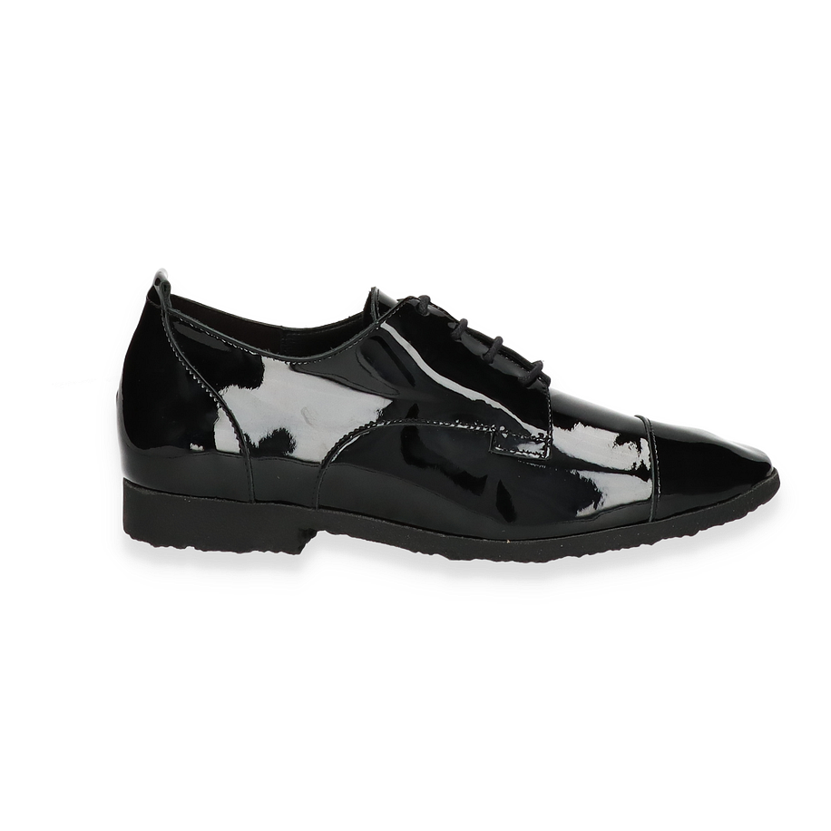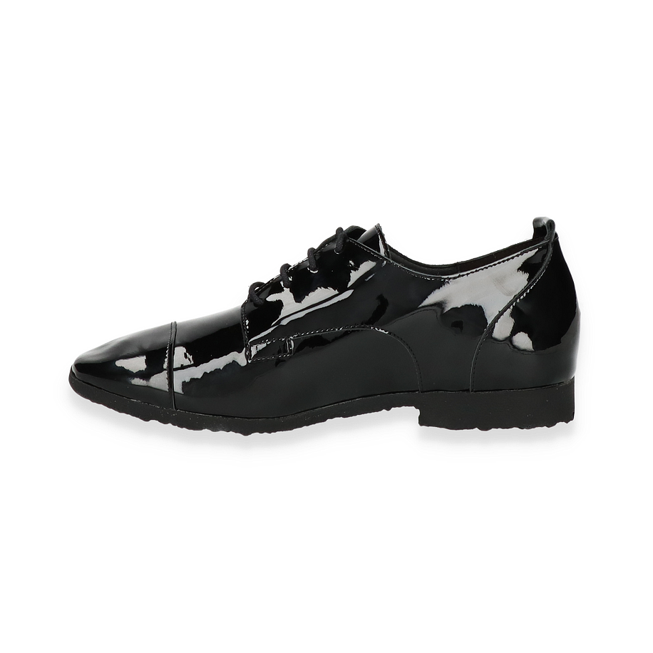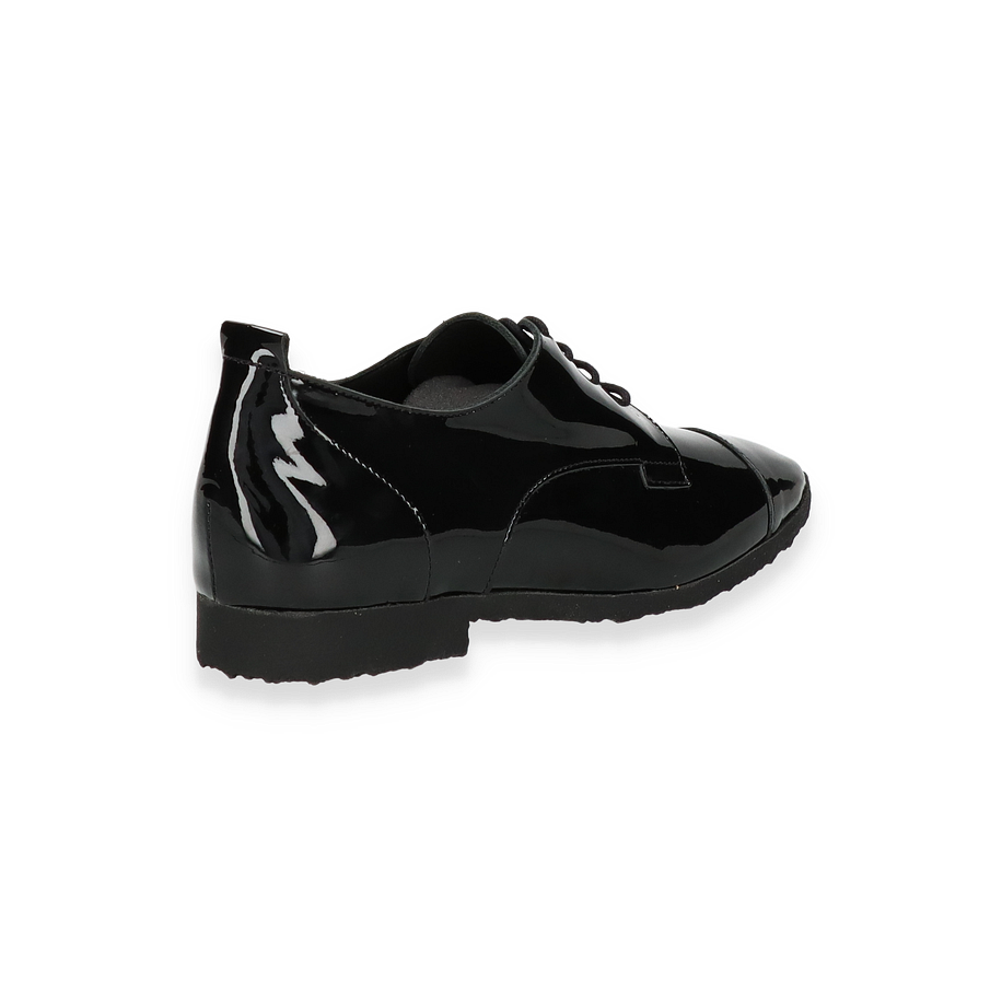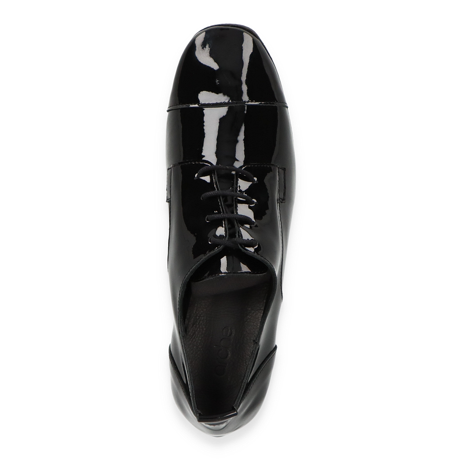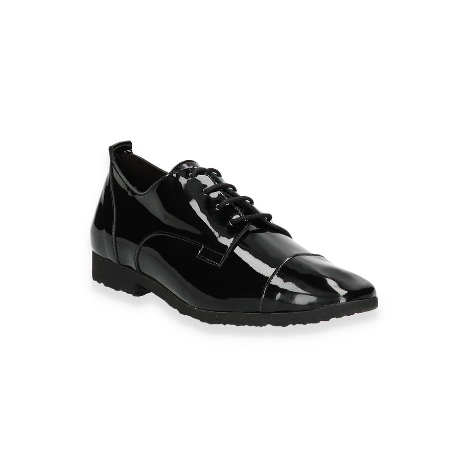 Der Arche SADBYE Trotteur für Damen präsentiert sich in einem eleganten, schwarzen Design aus weichem Lackleder. Die glänzende Oberfläche verleiht dem Schuh einen modernen und stilvollen Look, der sich perfekt für formelle Anlässe oder den täglichen Büroalltag eignet. Die klare Linienführung und die dezente Schnürung unterstreichen die zeitlose Eleganz dieses Modells.