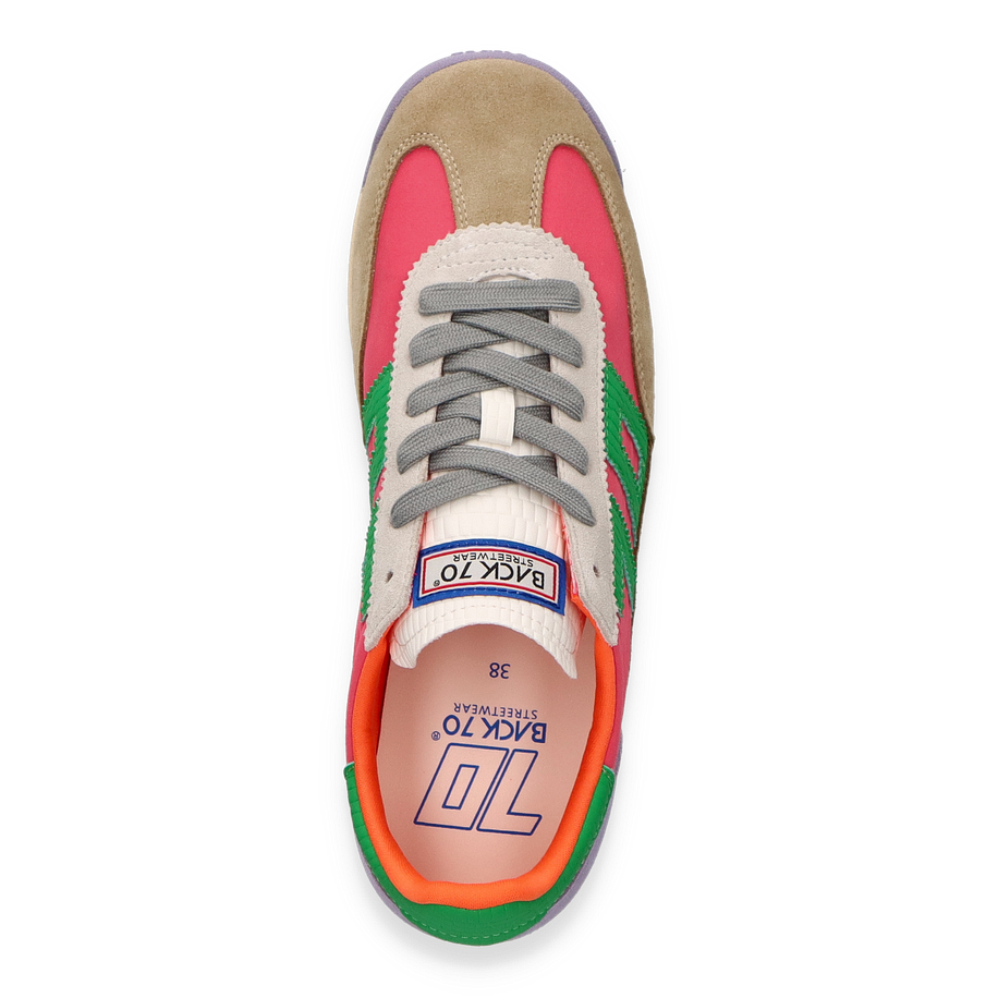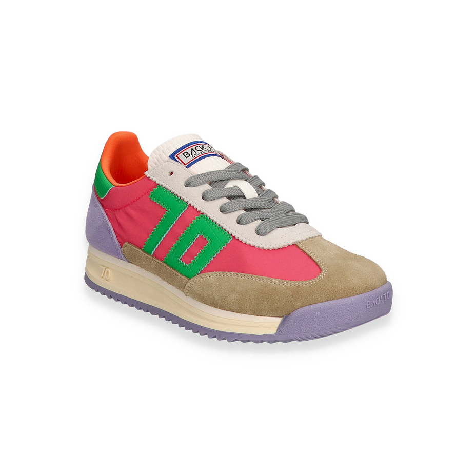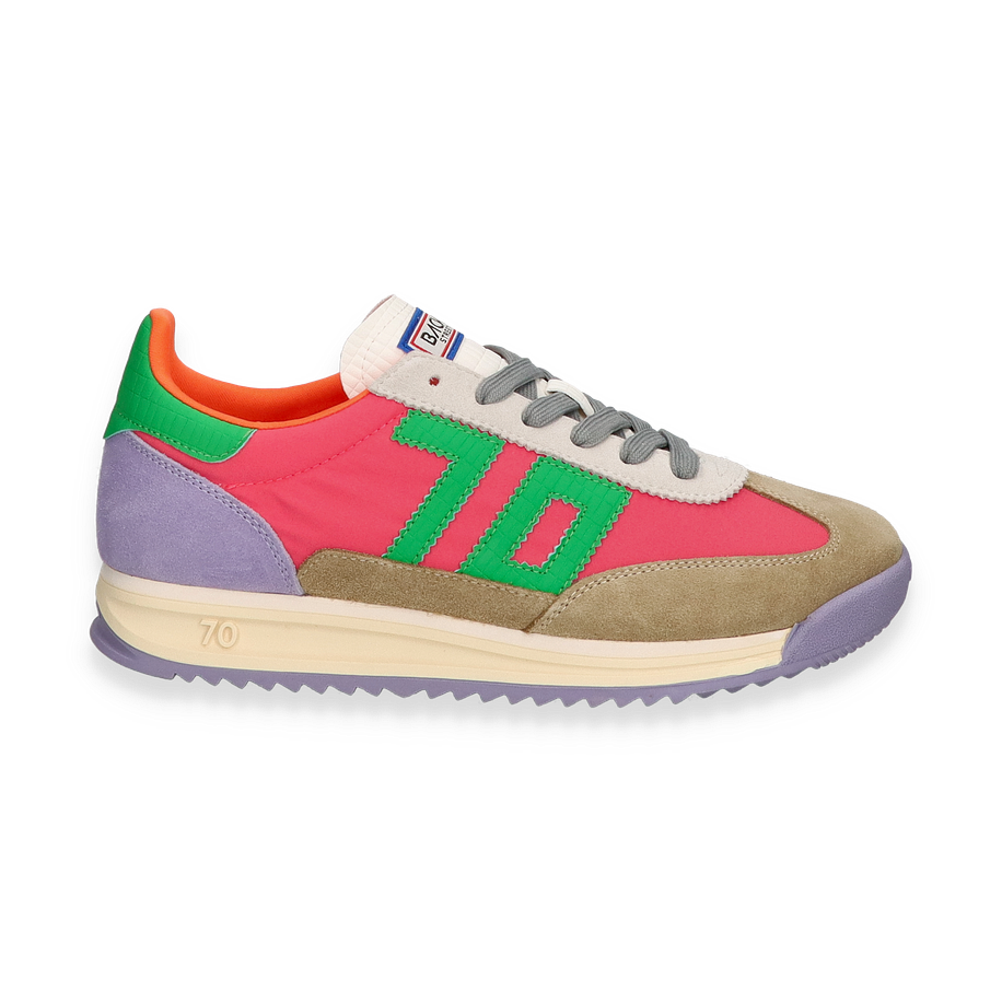 Preis inkl. MwSt.Der BARKLEY JOGGER von Back 70 präsentiert sich in einem lebendigen Beige/Bunt-Design, das sofort ins Auge fällt. Die Kombination aus Leder und Textil im Obermaterial verleiht dem Sneaker einen modernen und zugleich klassischen Look. Die kontrastierenden Farben, darunter ein auffälliges Grün und ein sanftes Lila, ergänzen das Gesamtbild perfekt. Der Schuh ist ideal für Damen, die Wert auf Stil und Komfort legen.