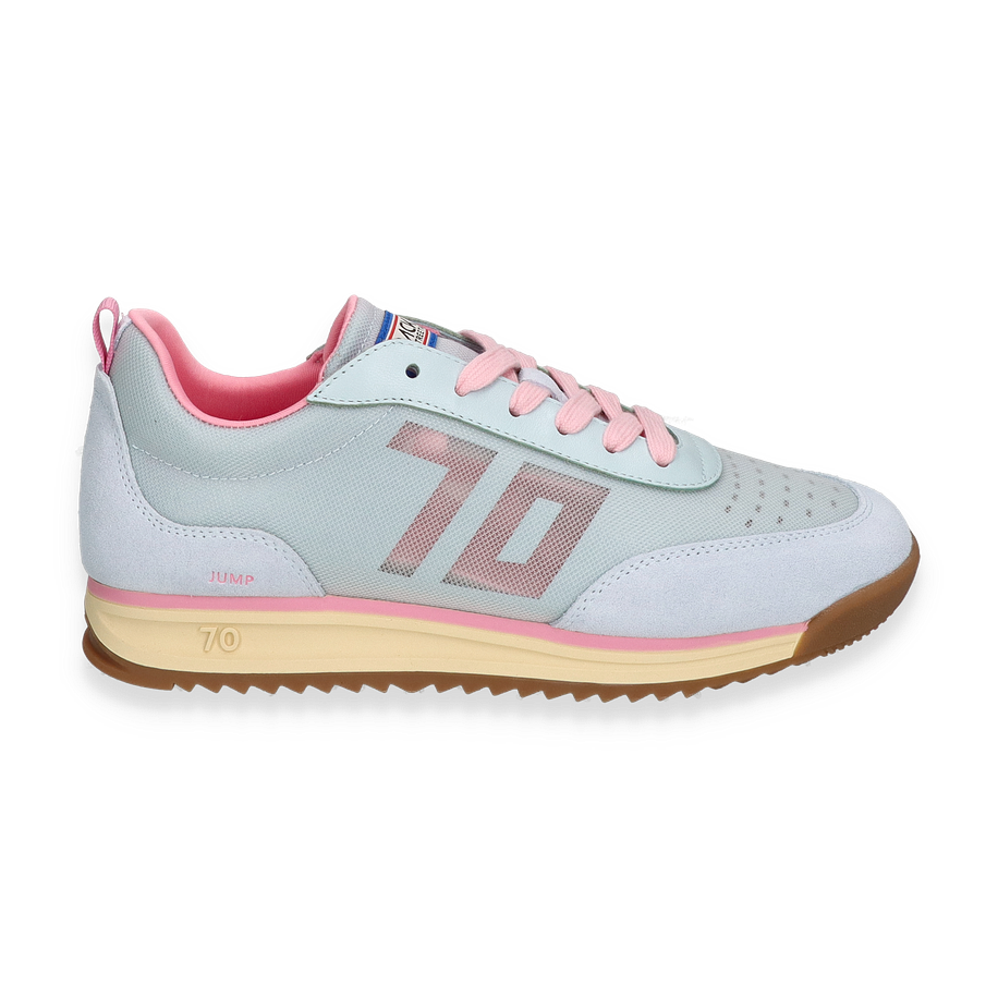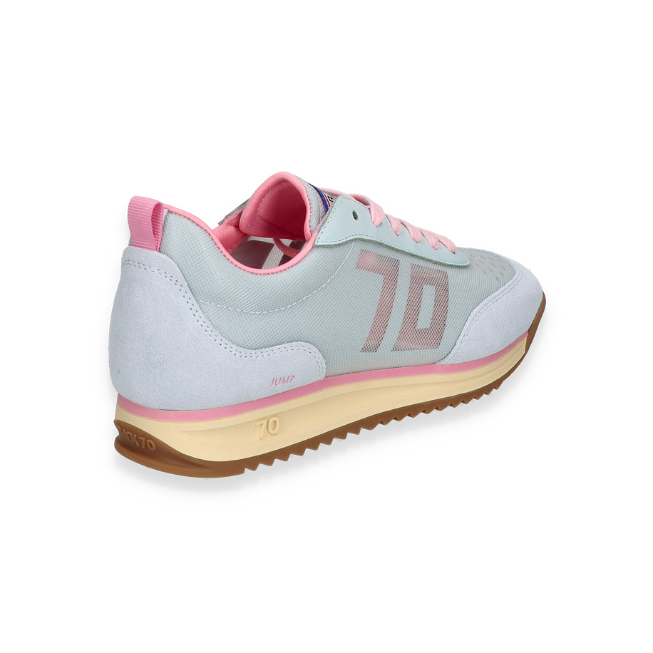 Entdecken Sie den JOGGER JUMP Sneaker von Back 70, ein stilvolles Highlight für Damen. In einem ansprechenden Hellblau gehalten, kombiniert dieser Schuh moderne Ästhetik mit sportlichem Flair. Die zarten rosa Akzente und das markante "70"-Logo verleihen dem Sneaker eine einzigartige Note. Der Schuh besticht durch seine harmonische Farbgebung und das durchdachte Design, das sowohl im Alltag als auch bei besonderen Anlässen überzeugt.