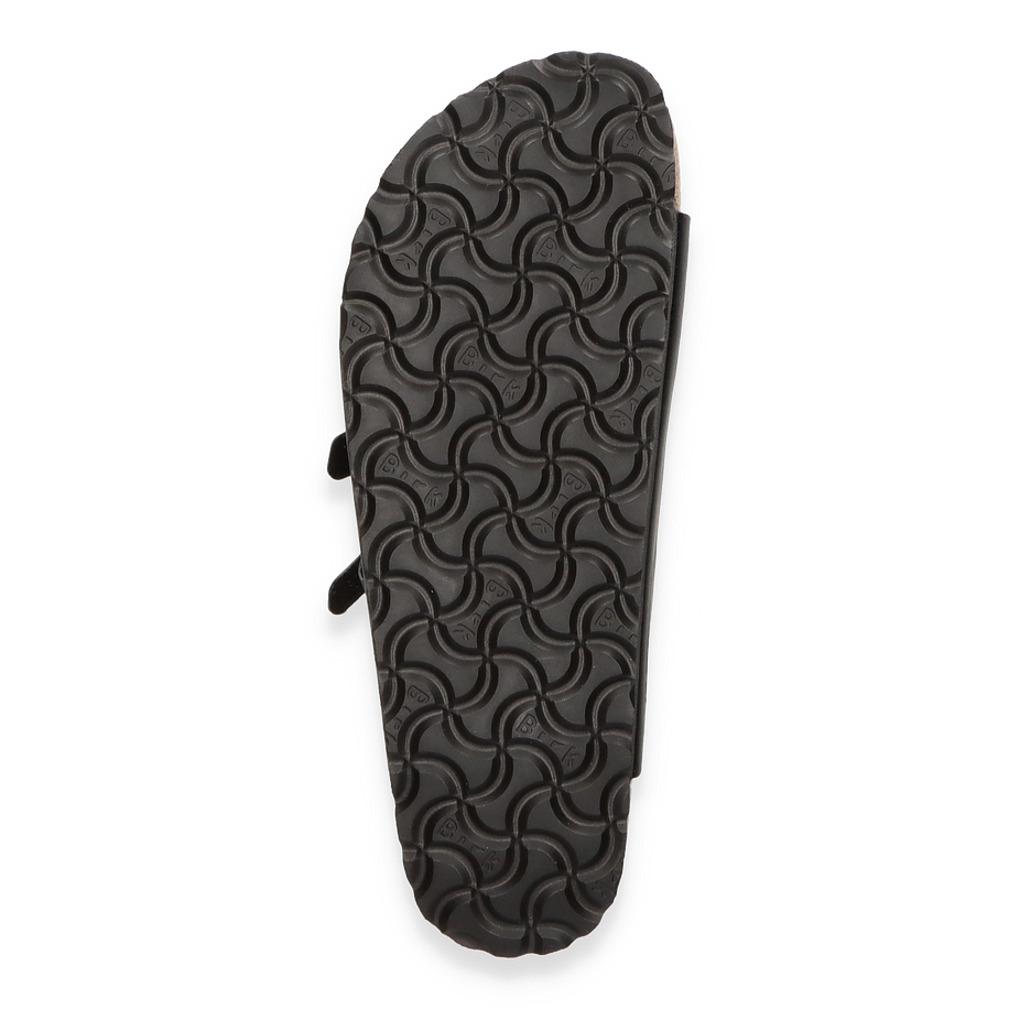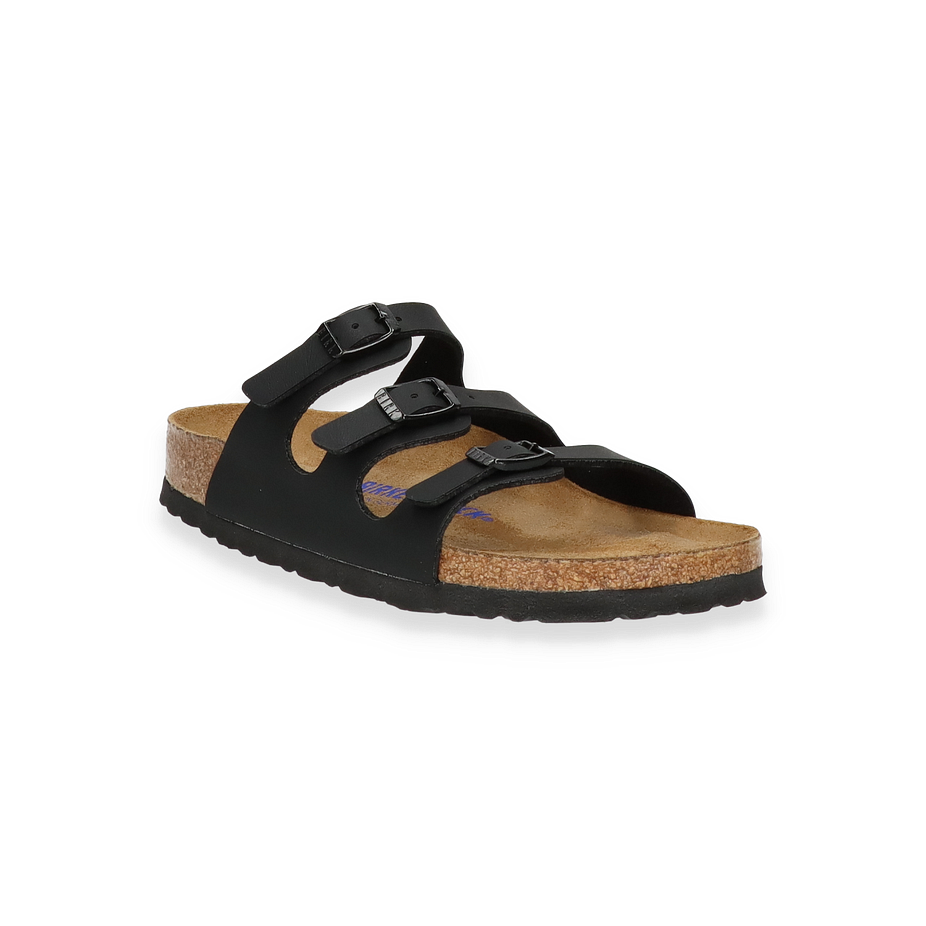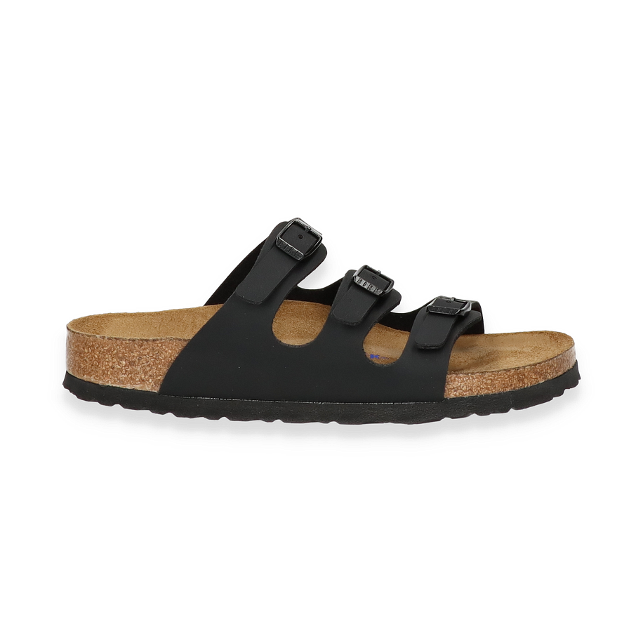 Preis inkl. MwSt.Die Birkenstock Pantoletten "FLORIDA" in elegantem Schwarz vereinen zeitloses Design mit höchstem Tragekomfort. Diese für Damen entworfenen Sandalen zeichnen sich durch ihre schmale Weite aus, die eine perfekte Passform bietet. Der dreifache Riemen mit verstellbaren Schnallen sorgt für sicheren Halt und verleiht dem Schuh einen klassischen Look. Die hochwertige Verarbeitung und das dezente Branding auf der Innensohle unterstreichen die Qualität und den Stil dieser Pantoletten.