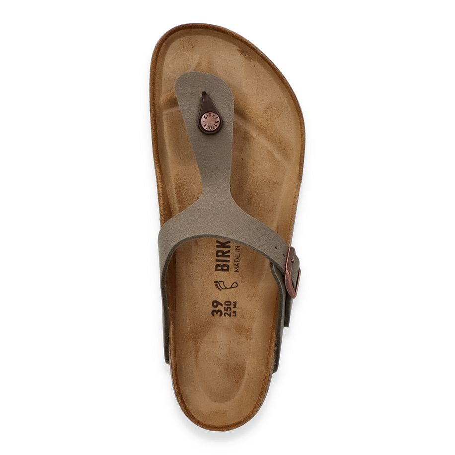 Preis inkl. MwSt.Mit diesen GIZEH Zehentrennern von Birkenstock machen Sie nichts falsch, wenn Ihnen Komfort und Optik gleichermaßen wichtig sind. Die braunen Damenschuhe überzeugen mit ihrem bequemen Fußbett und der rutschfesten Sohle, die für ein perfektes Laufgefühl sorgen. Der Riemen der Pantoletten für Damen ist in einem wunderschönen Braun, aber gräulich schimmernden, Farbton gefertigt und kann damit zu nahezu jeder anderen Farbe kombiniert werden.