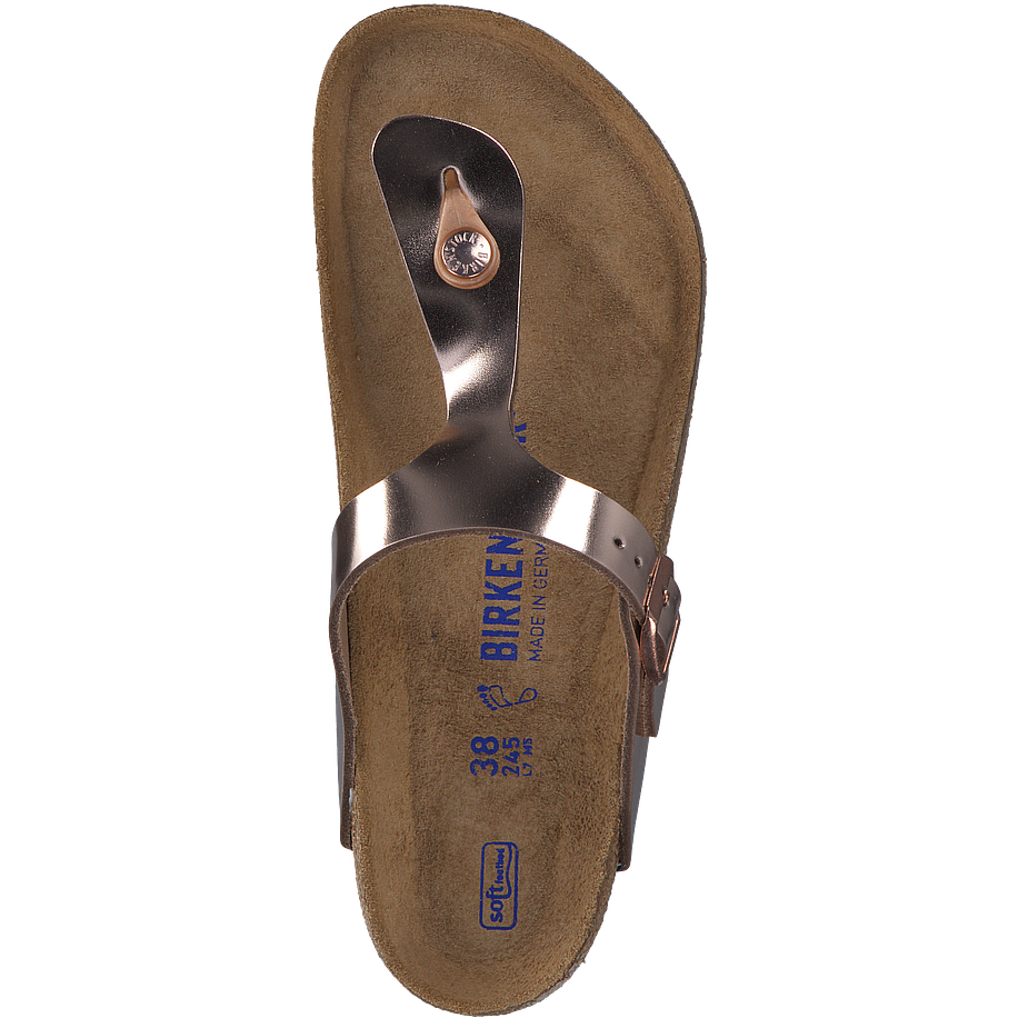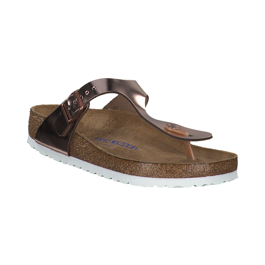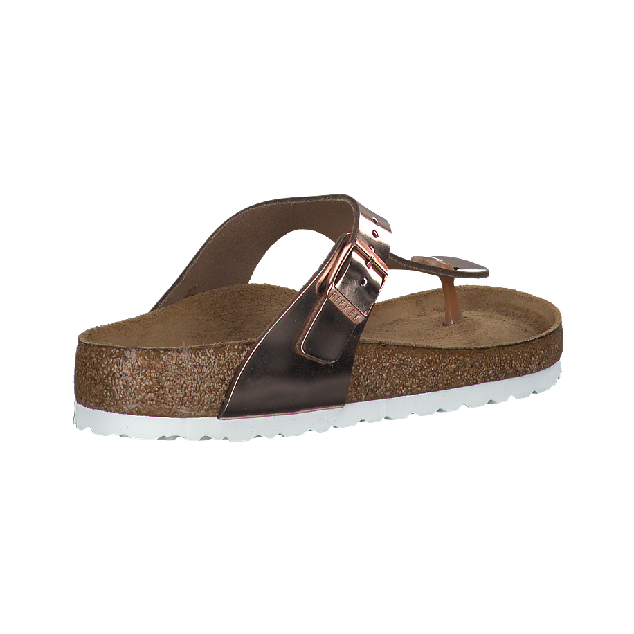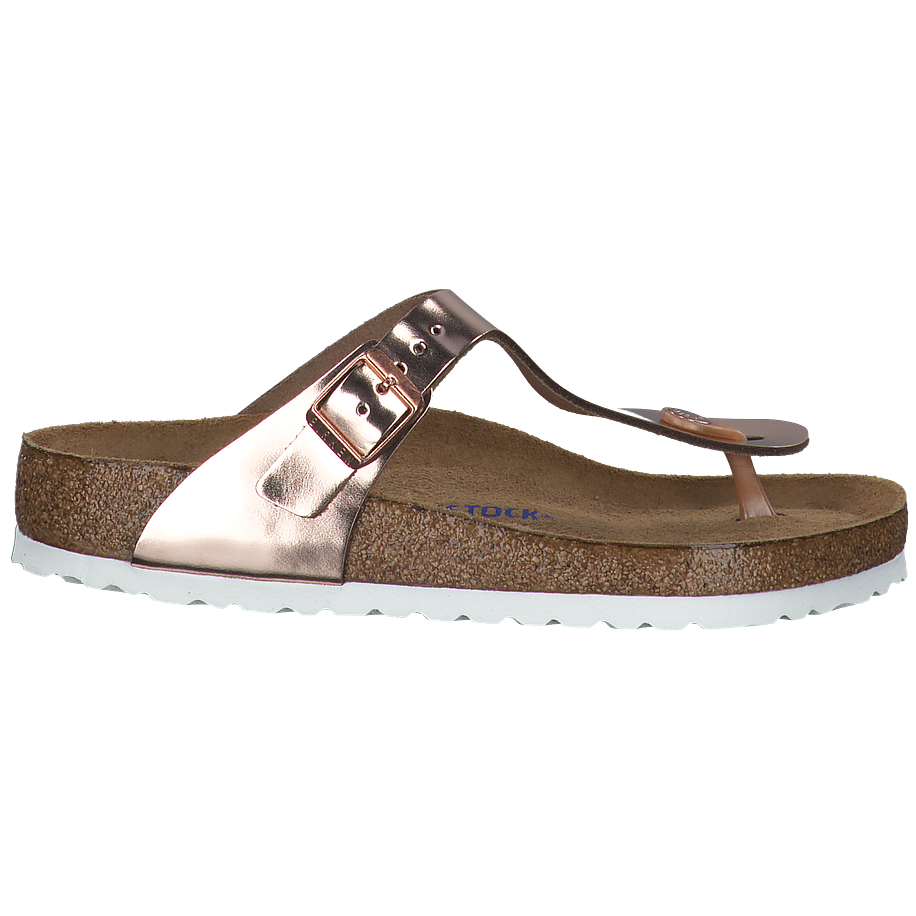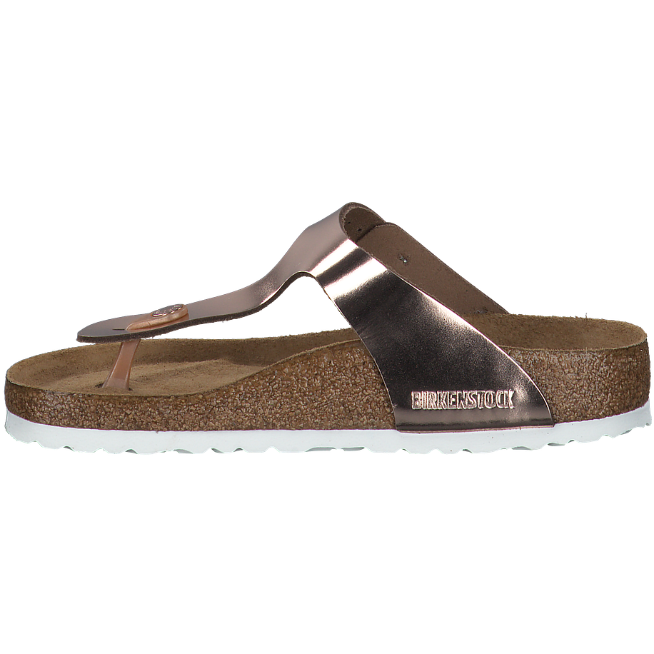 Diese GIZEH Zehentrenner von Birkenstock sehen einfach spitze aus und überzeugen mit ihrem eleganten Design in ganzer Linie! Die Damenschuhe sind aus einem hochwertigen Leder in Roségold gefertigt, welches wunderschön glänzt und zu zart gebräunter Sommerhaut einfach nur wunderschön aussieht. Die weiße Sohle passt perfekt und ist dabei absolut rutschfest, sodass Sie von einem sicheren Laufgefühl profitieren. Selbstverständlich stimmt hier auch der Komfort und so können Sie sich auf einen perfekten Sommerschuh freuen, der sich schnell zum Allrounder entpuppt.
