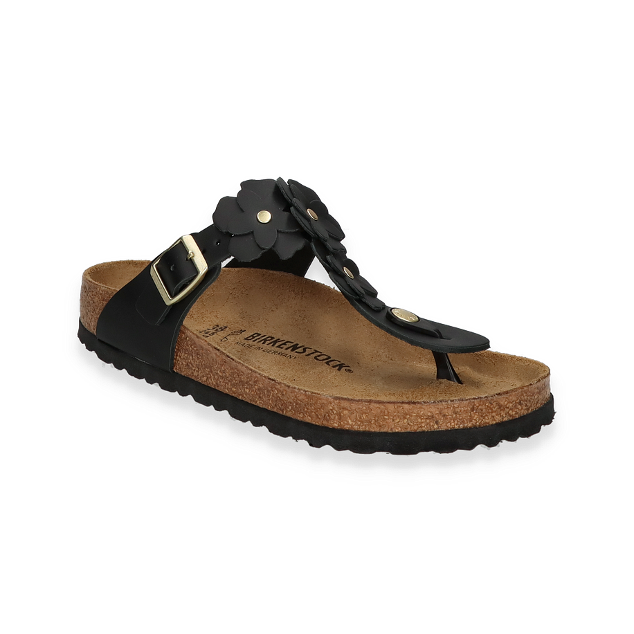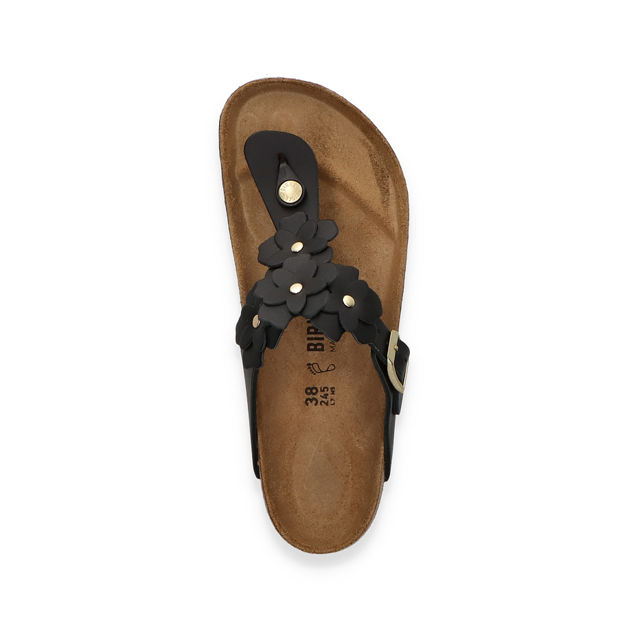 BirkenstockBirkenstock GIZEH FLOWER Damen-Zehentrenner aus Leder 591001000008 (Schwarz)
