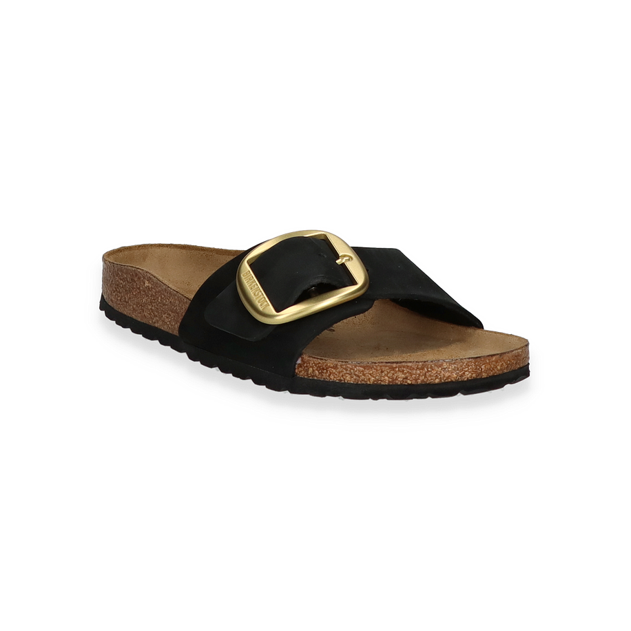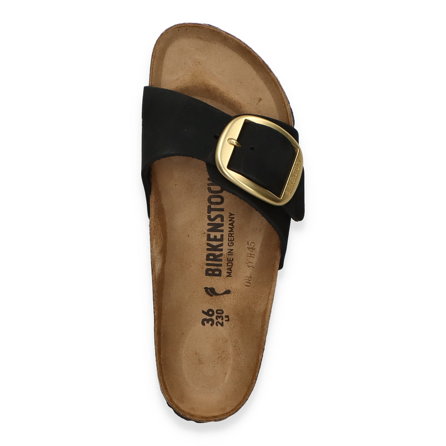 Preis inkl. MwSt.Bequem durch den Tag kommen Sie mit diesen wundervollen Birkenstock MADRID Pantoletten für Damen allemal, doch sind die Damenschuhe nicht nur in puncto Komfort richtige Volltreffer, sondern überzeugen auch noch mit einem besonders modischen und stilvollen Look. Die offene Pantolettenform bietet vor allem in der warmen Jahreszeit eine angenehme Frische bei jedem Schritt und sorgt so dafür, dass Sie sich auch bei strahlendem Sonnenschein und heißen Temperaturen absolut wohlfühlen können. Der praktische Riemen lässt sich mittels goldener Schnalle an Ihre Fußform anpassen und sorgt dabei mit einem modischen Design in Schwarz für einen tollen Hingucker bei jedem Look.