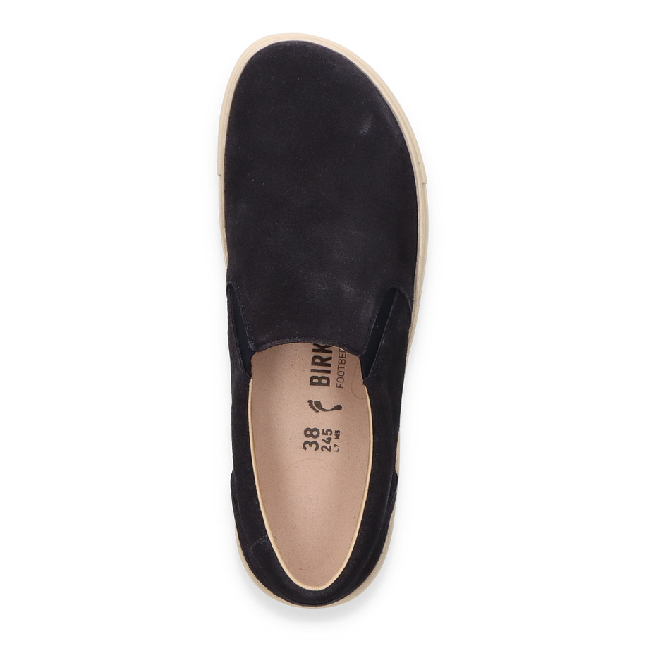 Der Birkenstock OSWEGO Sneaker in elegantem Dunkelblau präsentiert sich als stilvoller Begleiter für Damen. Das Obermaterial aus hochwertigem Leder verleiht dem Schuh eine luxuriöse Optik, während die schmale Weite für eine optimale Passform sorgt. Die dezente Farbgebung macht diesen Slipper zu einem vielseitigen Accessoire, das sowohl zu formellen als auch zu legeren Outfits passt. Der Schuh ist mit einem elastischen Einsatz versehen, der das An- und Ausziehen erleichtert und für zusätzlichen Komfort sorgt.