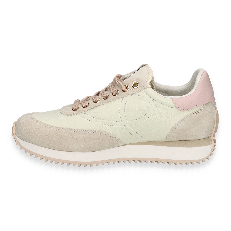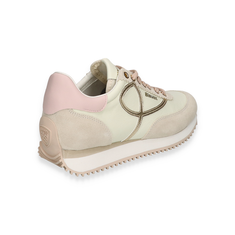 Preis inkl. MwSt.Der Sneaker LORAIN von Blauer präsentiert sich in einem eleganten Beige, das durch subtile Rosé-Akzente ergänzt wird. Die Kombination aus Leder und anderen hochwertigen Materialien verleiht dem Schuh eine luxuriöse Ausstrahlung. Die sorgfältig platzierten Details und die goldfarbenen Ösen unterstreichen das stilvolle Design, während die markante Sohle für einen modernen Touch sorgt. Dieser Sneaker für Damen ist die perfekte Wahl für alle, die Wert auf Stil und Komfort legen.