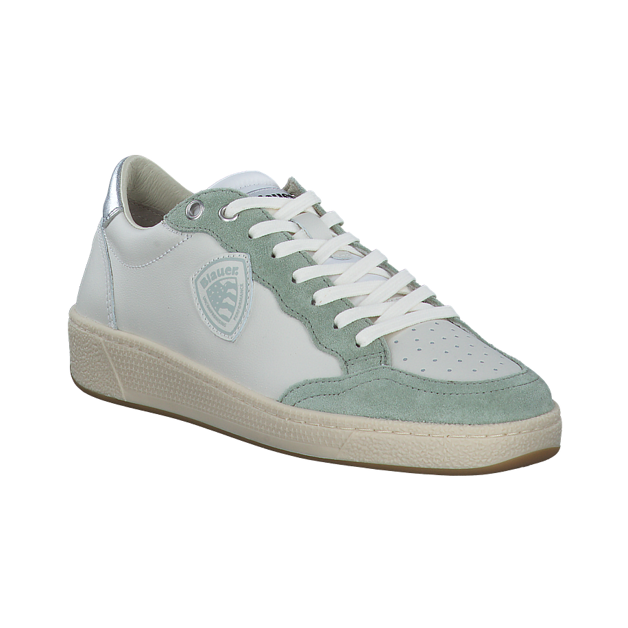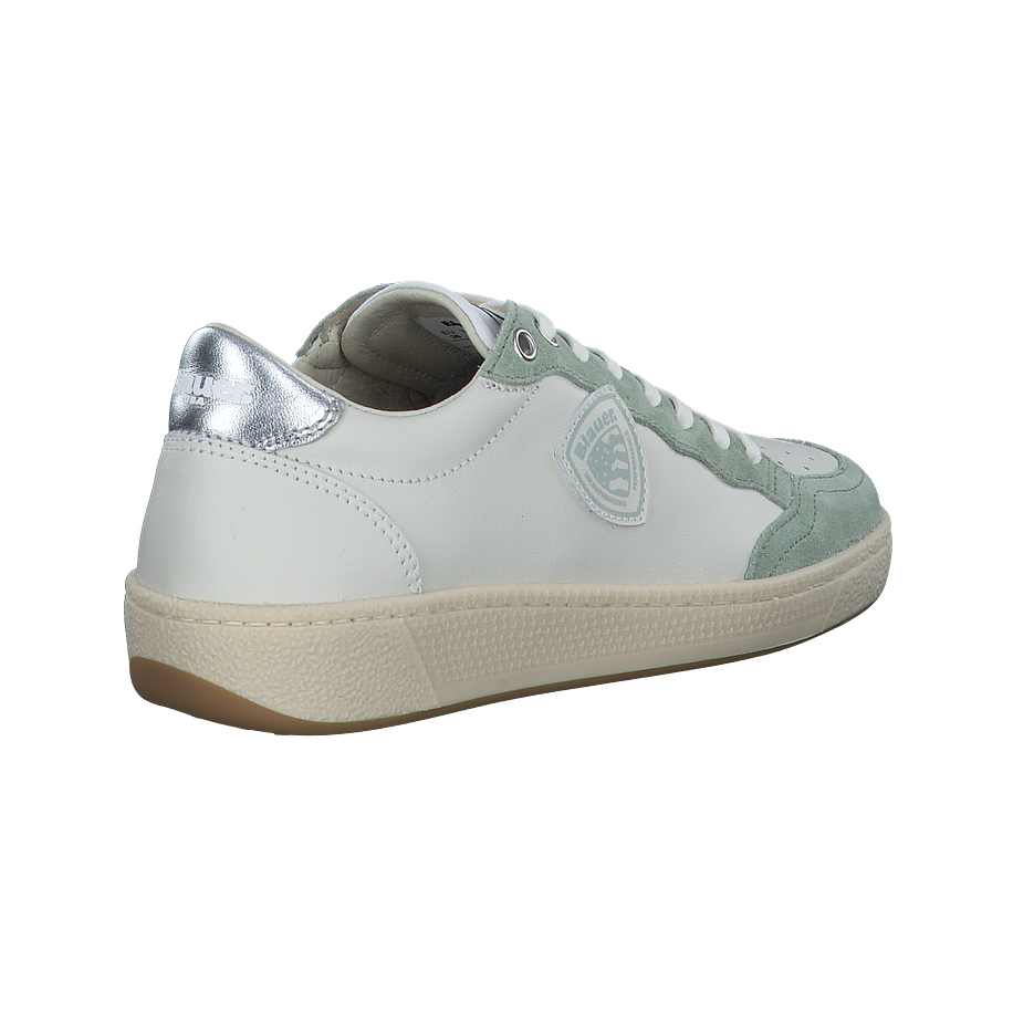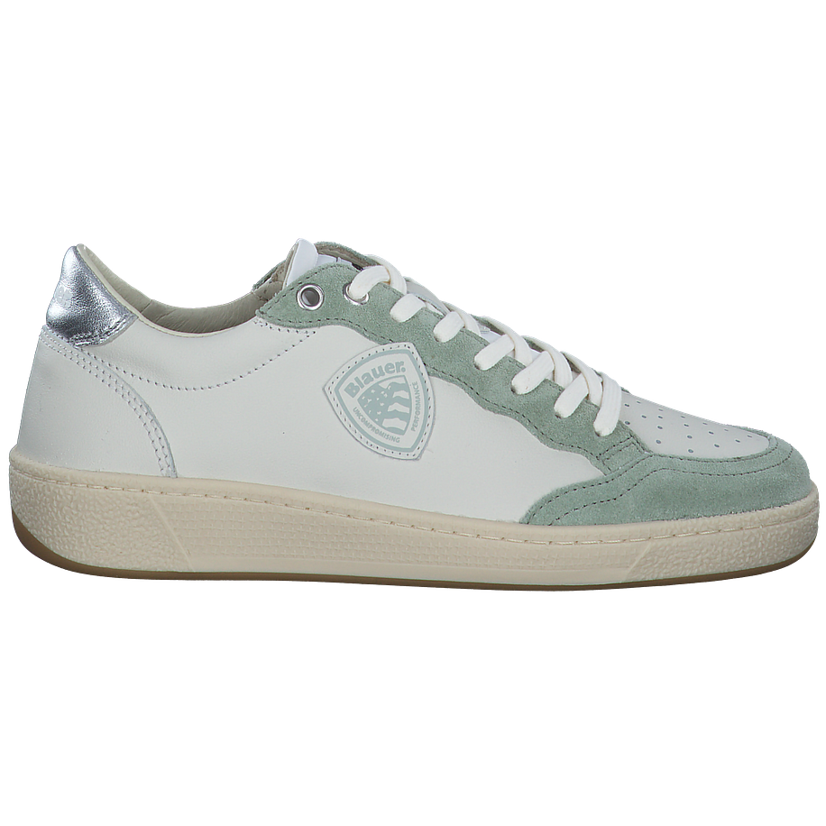 Entdecken Sie den OLYMPIA Sneaker von Blauer, ein stilvoller und komfortabler Schuh für Damen. Dieser Sneaker besticht durch sein weiß-hellgrünes Design, das sich perfekt in jede Garderobe einfügt. Mit einer Absatzhöhe von 3,5 cm bietet er eine angenehme Höhe, ohne auf Komfort zu verzichten. Das Obermaterial und das Innenfutter bestehen aus einer hochwertigen Leder-Textil-Kombination, die für Atmungsaktivität und Langlebigkeit sorgt. Die Innensohle aus Leder bietet zusätzlichen Komfort, während die robuste Gummisohle für hervorragende Traktion sorgt. Ein Must-Have für jede stilbewusste Frau.
