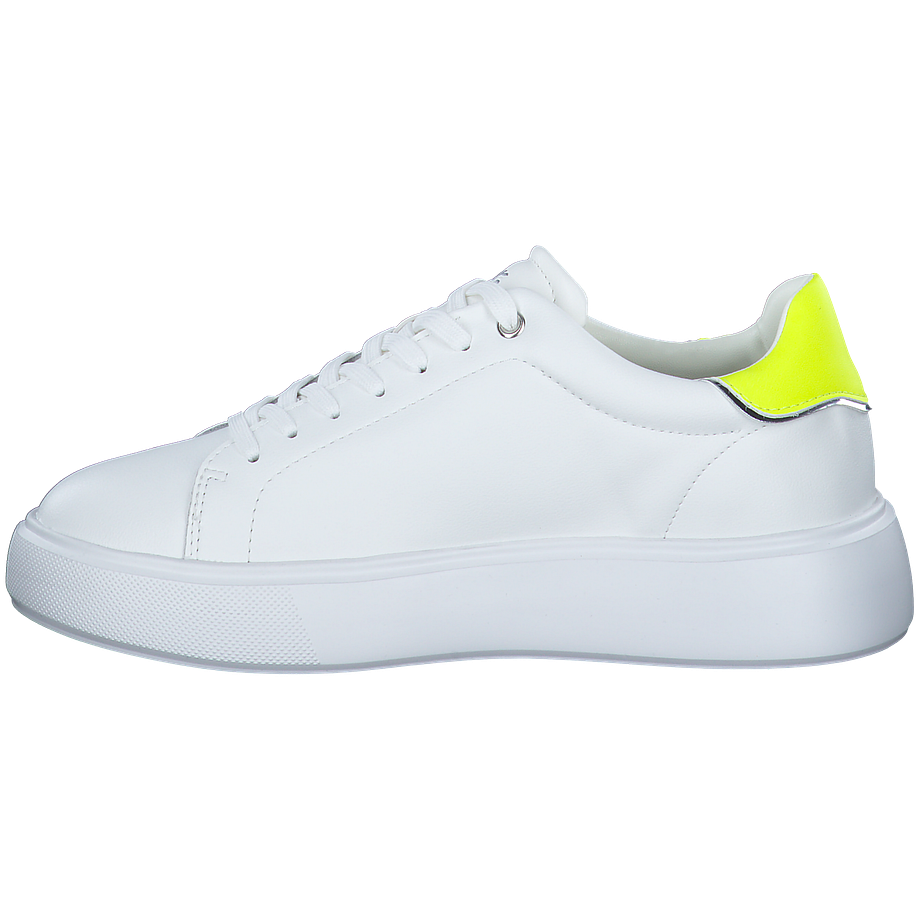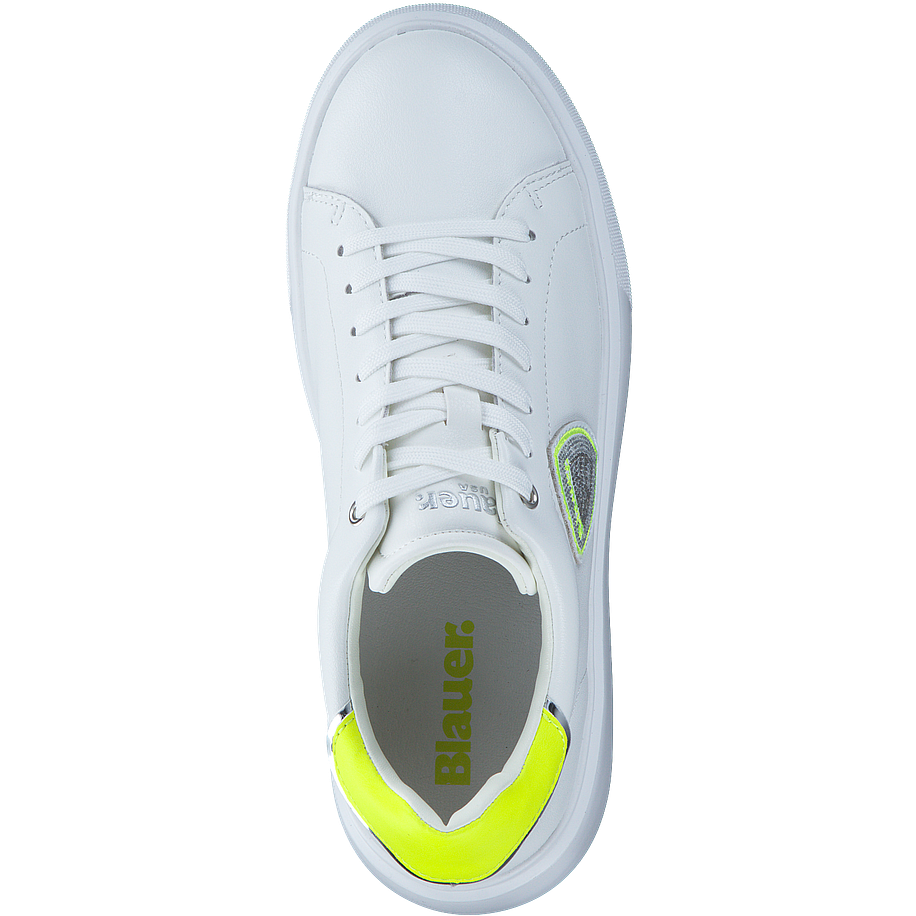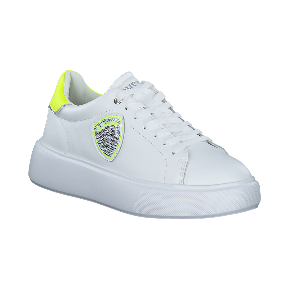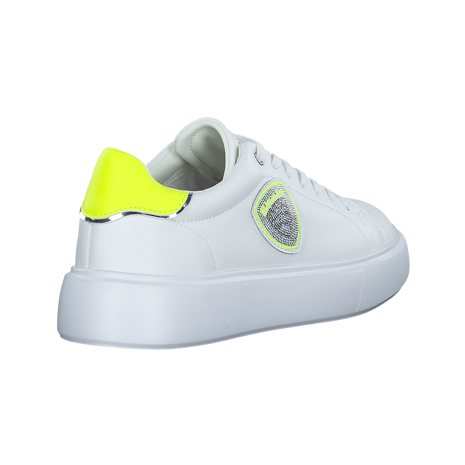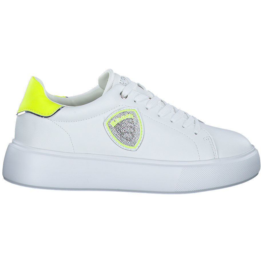 Entdecken Sie den VENUS01 Sneaker von Blauer, ein elegantes Schuhwerk für Damen. Dieser weiße Sneaker besticht durch sein Obermaterial und Innenfutter aus Leder und sonstigem Material, das für einen edlen Look sorgt. Die Innensohle ist aus Leder gefertigt, was für hohen Tragekomfort sorgt. Die Sohle aus Gummi bietet hervorragende Rutschfestigkeit. Mit einer Absatzhöhe von 4 cm verleiht dieser Sneaker Ihnen eine elegante Haltung. Besondere Details wie das Wechselfußbett und die neon-gelben Akzente setzen modische Akzente. Der VENUS01 ist mehr als nur ein Schuh - er ist ein Statement.