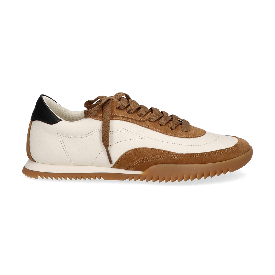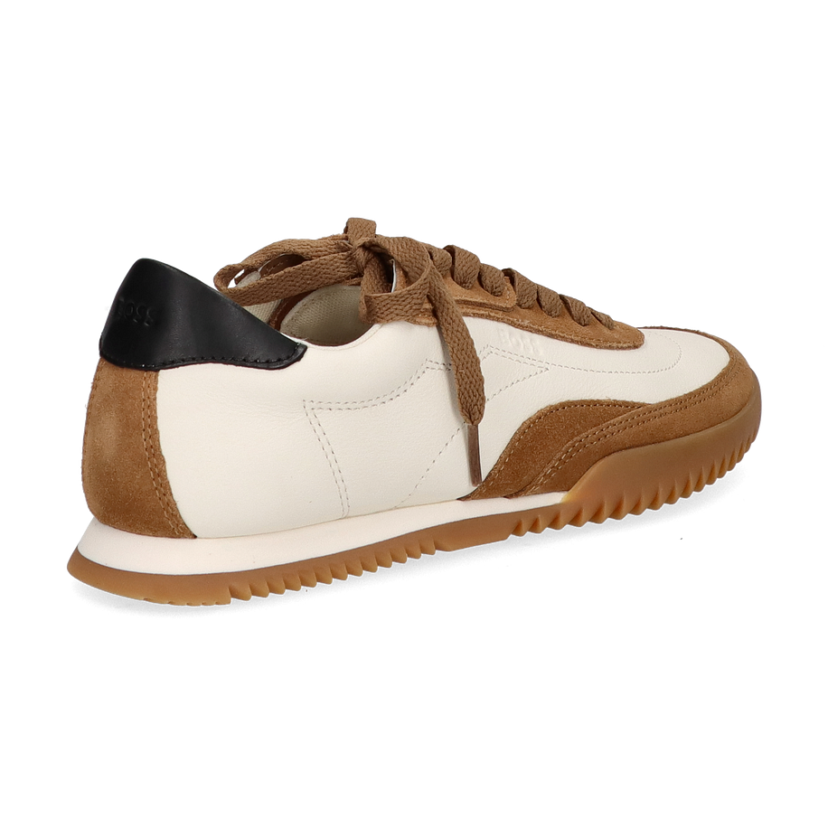 Der BOSS Sneaker "CARLYNN LOWP" für Damen präsentiert sich in einem eleganten Beige-Ton, der durch die Kombination aus hochwertigem Leder und Textil eine stilvolle und moderne Optik erhält. Die feinen Details und die sorgfältige Verarbeitung machen diesen Schuh zu einem zeitlosen Begleiter für den Alltag. Die braunen Schnürsenkel und die kontrastierende Sohle verleihen dem Sneaker einen sportlichen Touch, während das dezente BOSS-Logo die Exklusivität unterstreicht.