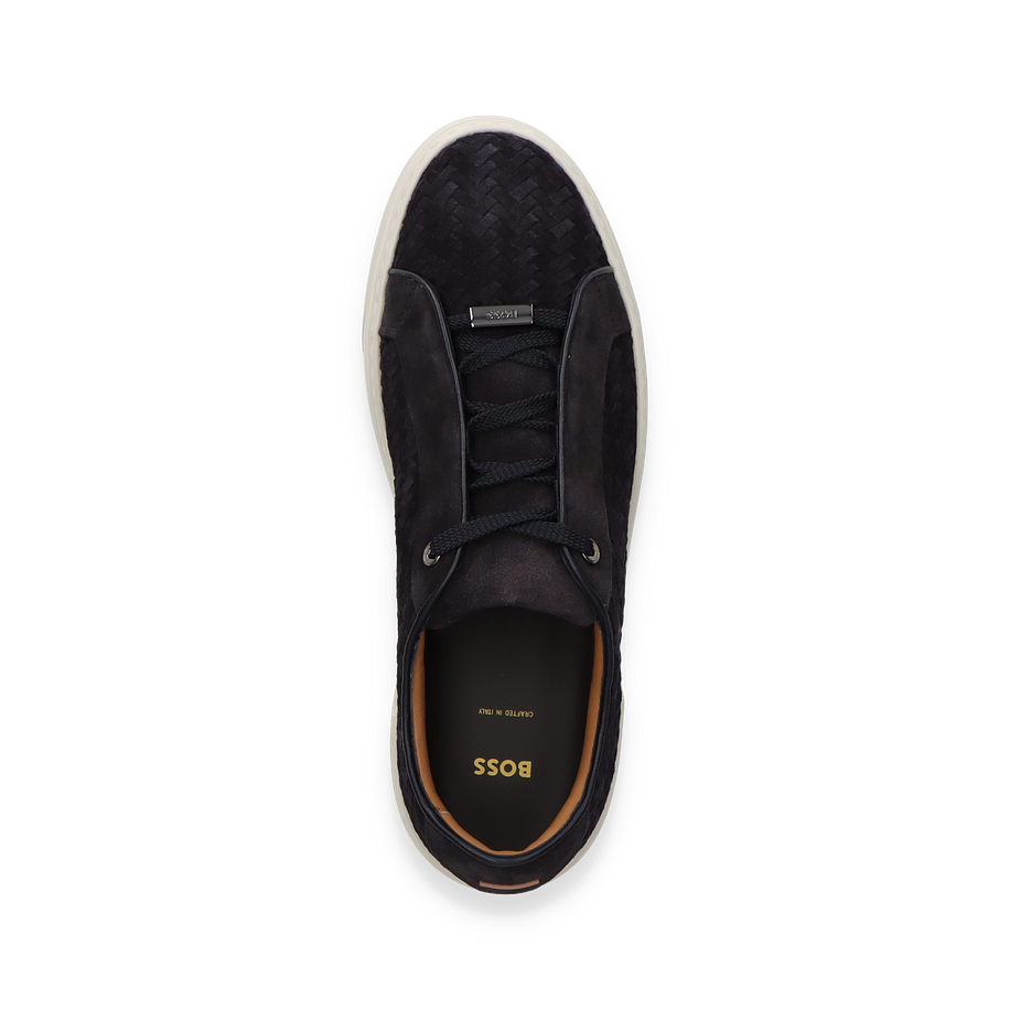 Der GARY TENN Sneaker von BOSS präsentiert sich in einem eleganten Dunkelblau, das durch das geflochtene Lederdesign eine besondere Note erhält. Die klare Linienführung und die dezente Farbgebung machen diesen Schuh zu einem vielseitigen Begleiter für Herren. Der Sneaker besticht durch seine hochwertige Verarbeitung und das stilvolle Erscheinungsbild, das sowohl zu lässigen als auch zu formellen Anlässen passt.