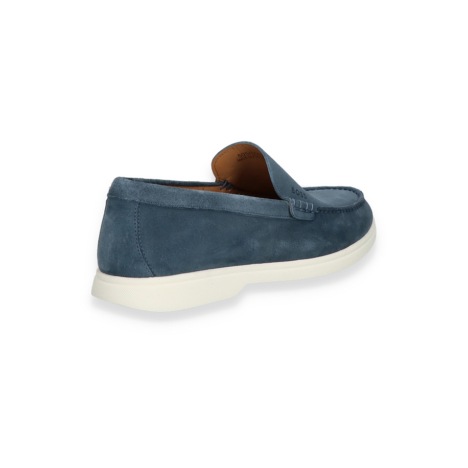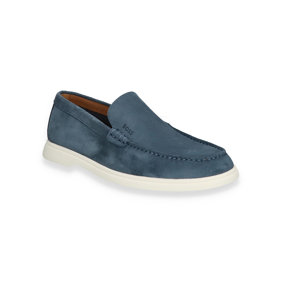 Entdecken Sie den eleganten Hugo Boss Slipper in einem ansprechenden Mittelblau, der durch sein zeitloses Design besticht. Dieser Slipper für Herren vereint Stil und Komfort und ist der ideale Begleiter für anspruchsvolle Anlässe. Die hochwertige Verarbeitung und das dezente Branding auf dem Obermaterial verleihen dem Schuh eine exklusive Note. Die klassische Silhouette und die subtile Farbgebung machen ihn zu einem vielseitigen Accessoire für jede Garderobe.