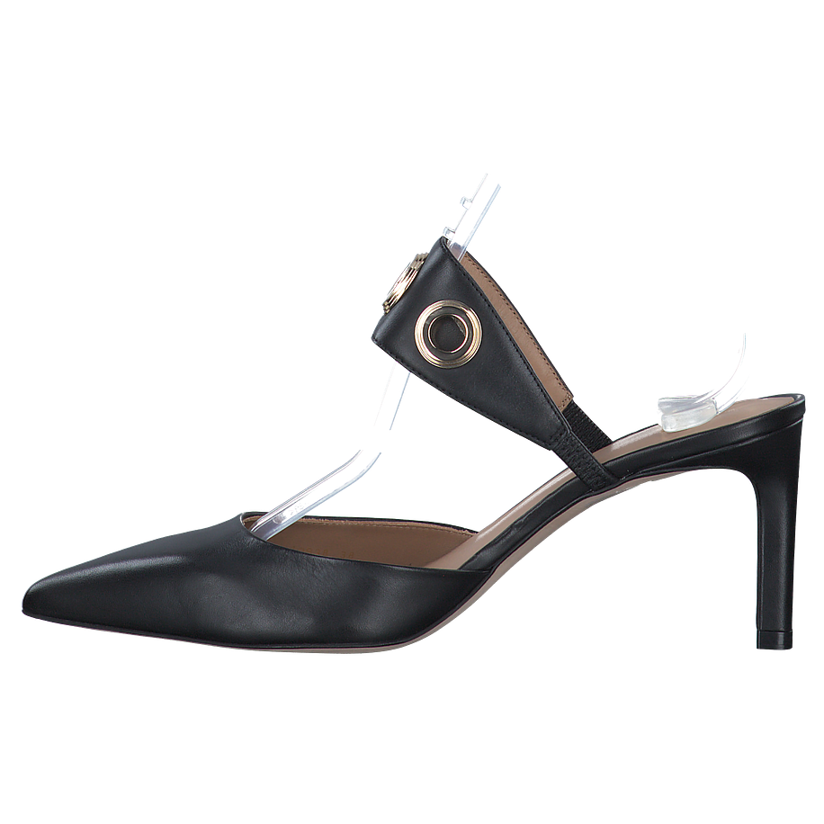 Preis inkl. MwSt.Die BOSS JANET Pantoletten für Damen in tiefem Schwarz vereinen Luxus und Extravaganz. Das hochwertige Leder verleiht diesen Pantoletten eine besonders edle Note. Mit ihren hohen, schmalen Absätzen setzen sie nicht nur aufregende, sondern auch verführerische Akzente. Die goldfarbenen Metallverzierungen an den Riemchen verleihen diesen Pantoletten zusätzliche Eleganz. Ein absolutes Must-have für Damen, die einen Look suchen, der gleichzeitig feminin und aufregend ist.