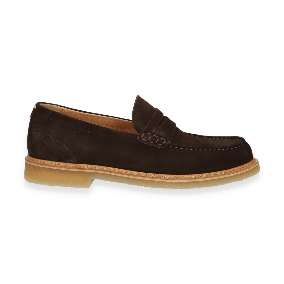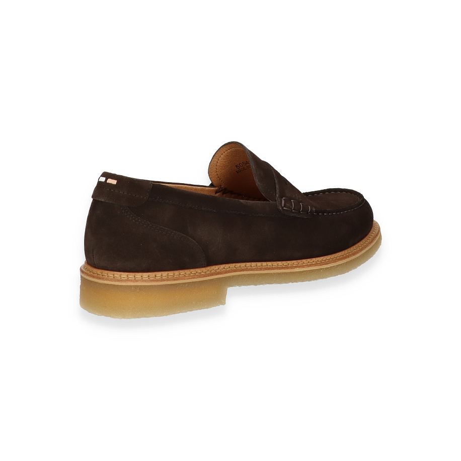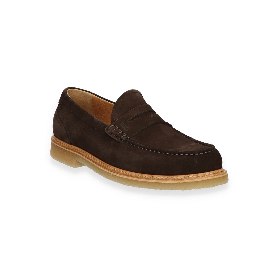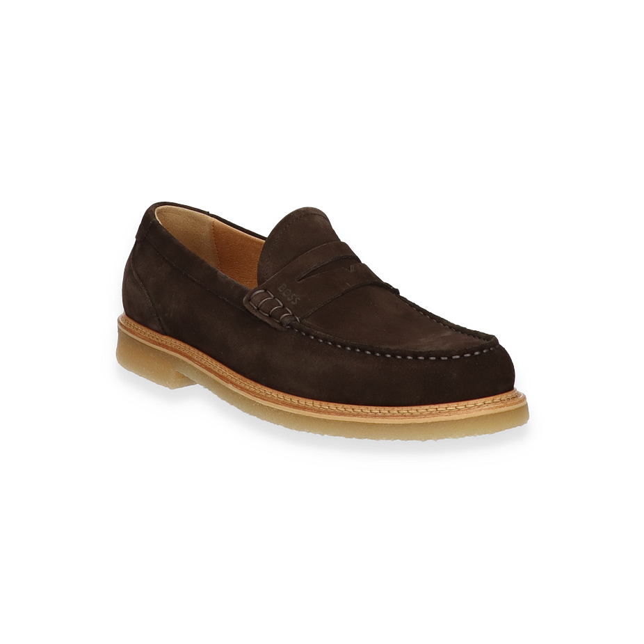 Der KOPE Slipper von BOSS präsentiert sich in einem eleganten dunkelbraunen Farbton, der zeitlose Raffinesse ausstrahlt. Das Obermaterial aus hochwertigem Leder verleiht dem Schuh eine luxuriöse Optik, während die sorgfältige Verarbeitung und die dezente Nahtführung für ein stilvolles Erscheinungsbild sorgen. Die klassische Silhouette des Slippers macht ihn zu einer vielseitigen Wahl für Herren, die Wert auf modische Eleganz legen.