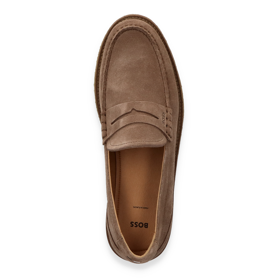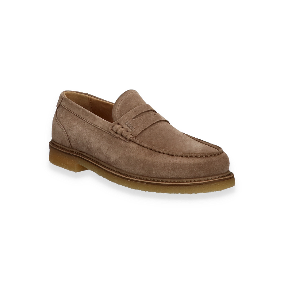 Preis inkl. MwSt.Der KOPE Slipper von BOSS präsentiert sich in einem eleganten hellbraunen Farbton, der zeitlose Raffinesse ausstrahlt. Gefertigt aus hochwertigem Leder, bietet dieser Schuh für Herren eine stilvolle Ergänzung zu jedem Outfit. Die dezente Nahtführung und das subtile Branding verleihen dem Slipper eine edle Note, während die klassische Form für vielseitige Kombinationsmöglichkeiten sorgt. Der Schuh besticht durch seine schlichte Eleganz und ist ideal für formelle Anlässe oder den gehobenen Freizeitlook.