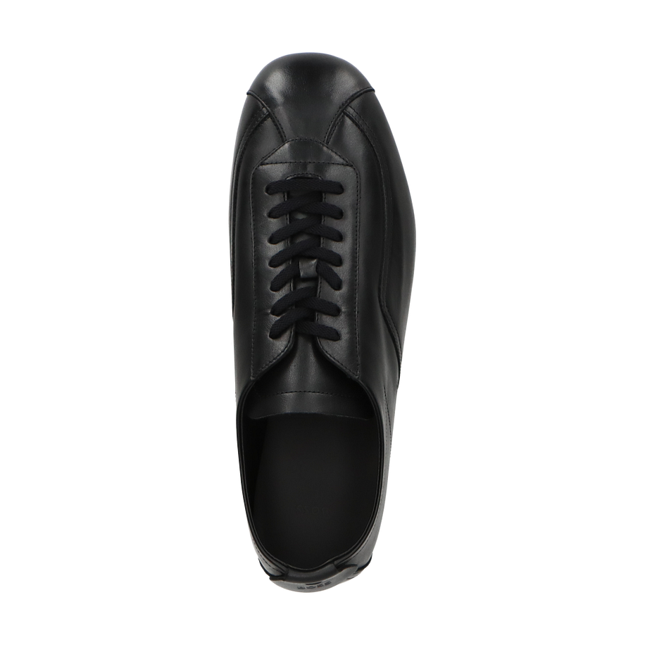 Der BOSS Sneaker "PYNO" für Herren präsentiert sich in einem eleganten Schwarz, das zeitlose Raffinesse ausstrahlt. Das minimalistische Design wird durch die glatte Lederoberfläche und die präzise Verarbeitung unterstrichen. Die klassische Schnürung und die feinen Nähte verleihen dem Schuh eine moderne, schlanke Silhouette, die sowohl für den Alltag als auch für besondere Anlässe geeignet ist. Der dezente Markenaufdruck fügt sich harmonisch in das Gesamtbild ein und unterstreicht die hochwertige Ästhetik.