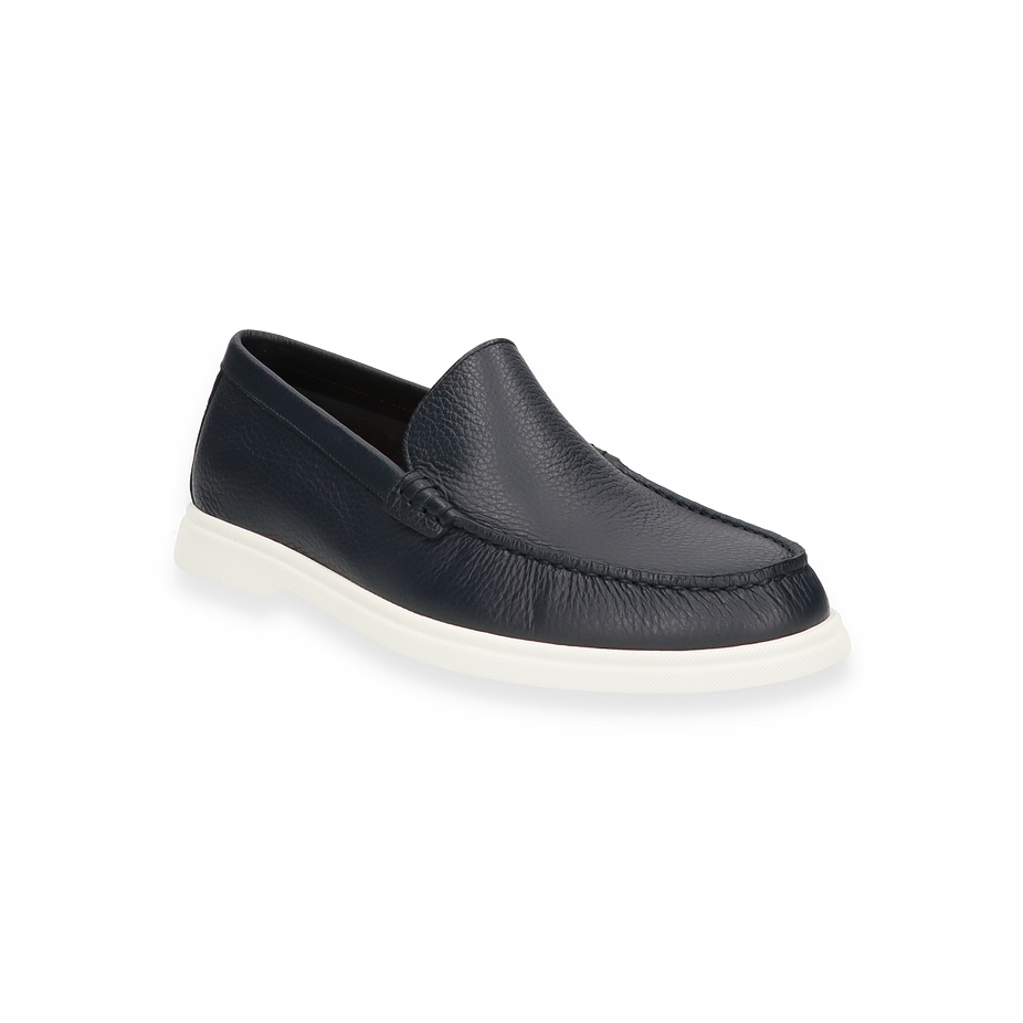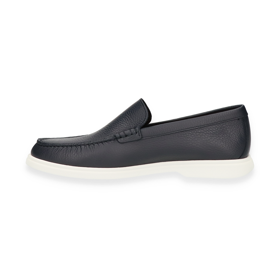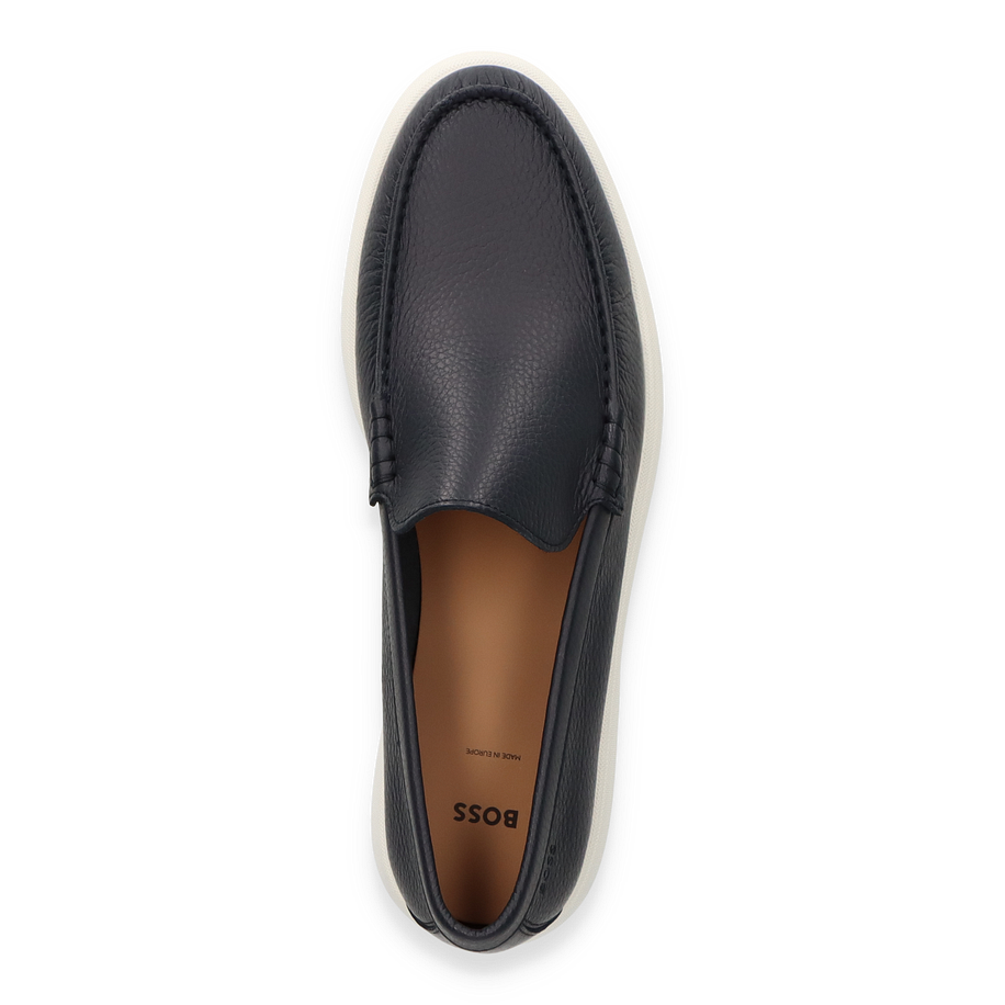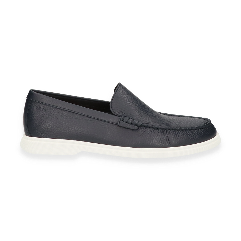 Preis inkl. MwSt.Der Boss SIENNE Slipper in elegantem Dunkelblau präsentiert sich als stilvoller Begleiter für Herren. Die klare Linienführung und das hochwertige Leder verleihen diesem Schuh eine zeitlose Ästhetik, die sowohl für formelle Anlässe als auch für den Alltag geeignet ist. Die dezente Nahtführung und die kontrastierende weiße Gummisohle unterstreichen das edle Design und bieten gleichzeitig einen modernen Touch.