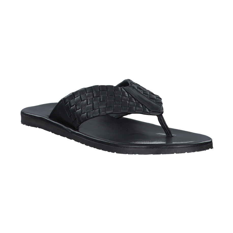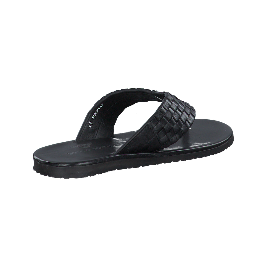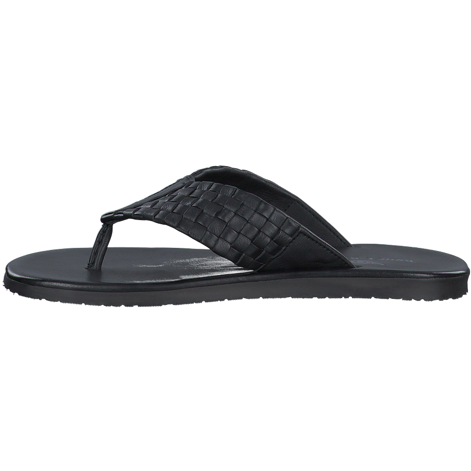 Klassische sommerliche Herrenschuhe mit modernem Twist - diese schicken Bruce Brown Zehentrenner für Herren überzeugen sowohl mit einem angenehmen Komfort bei jedem Schritt, als auch mit einem lässigen Look! Die Herrenschuhe kommen ganz in Schwarz daher und das feine Leder sorgt mit der coolen geflochtenen Optik der Riemen für einen stylishen Hingucker. Die robusten Gummisohlen versprechen eines tolles Tragegefühl und verhindern zudem ein Ausrutschen auf nassen und glattem Boden am Strand und Pool. Doch auch in der Freizeit sehen die schwarzen Bruce Brown Zehentrenner einfach nur klasse aus!