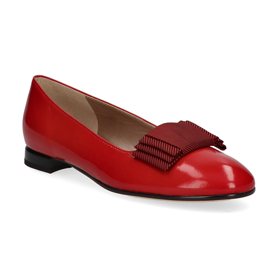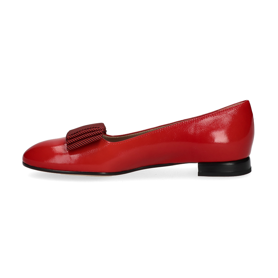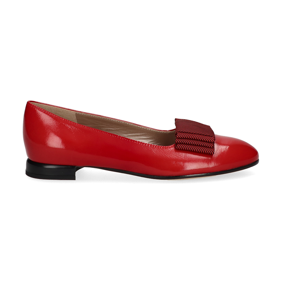 Die Brunate Ballerinas in einem lebhaften Rot sind ein elegantes Highlight für Damen, die Stil und Komfort schätzen. Das glänzende Lederoberteil wird durch eine raffinierte Schleifendetailierung ergänzt, die dem Schuh eine feminine Note verleiht. Die schlanke Silhouette und der dezente Absatz von 1,5 cm machen diesen Schuh zu einem vielseitigen Begleiter für verschiedene Anlässe, von formellen Veranstaltungen bis hin zu entspannten Ausflügen.