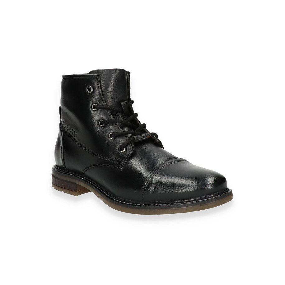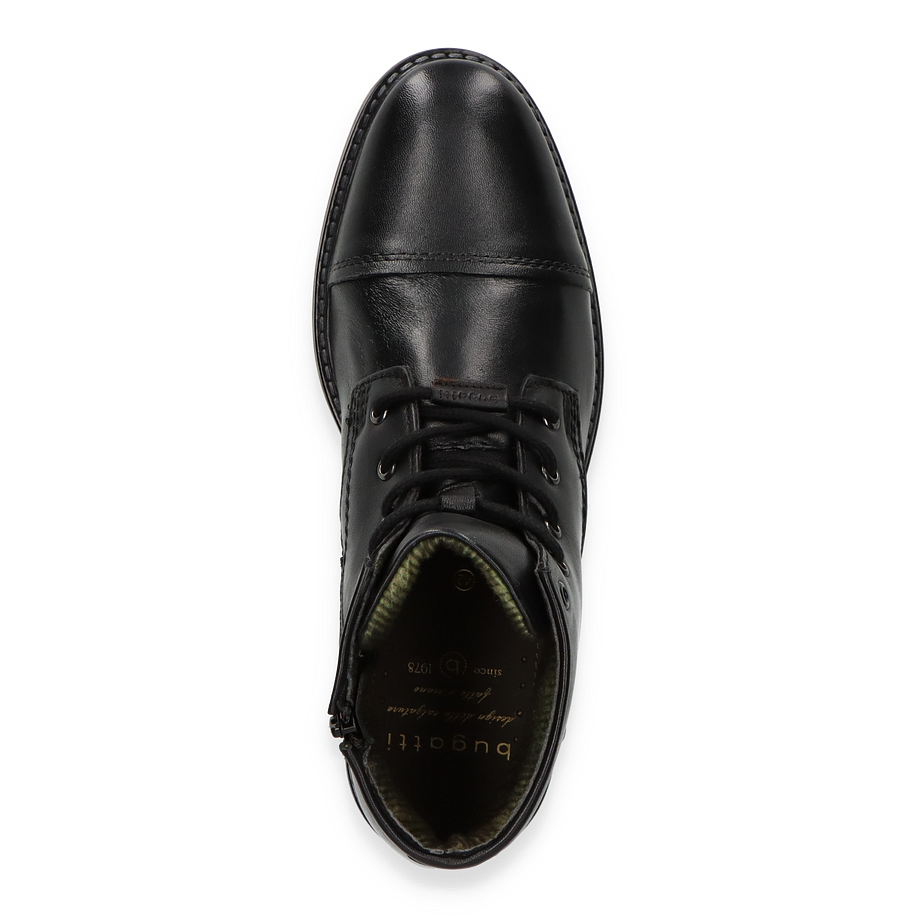 Schwarze Boots sollten in keinem Schuhschrank fehlen - da kommen diese modischen Bugatti Schnürboots für Herren gerade recht! Die smarten Herrenschuhe überzeugen mit einem makellosen Design, einer hochwertigen Verarbeitung und einem angenehmen Tragekomfort, sodass Sie sich garantiert wohlfühlen werden. Die Boots sind aus feinem schwarzem Glattleder gefertigt, welches durch robuste Gummisohlen und sportive Schnürungen optimal abgerundet wird. Dank des schlichten Designs und der klassichen Farbgebung lassen sich die Herrenschuhe toll kombinieren und sind zudem besodners angenehm zu tragen. Ein Warmfutter macht die Boots winterfest.