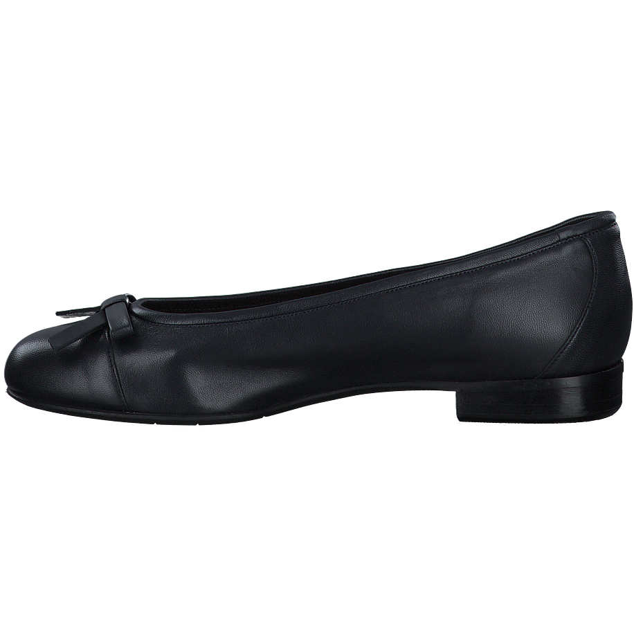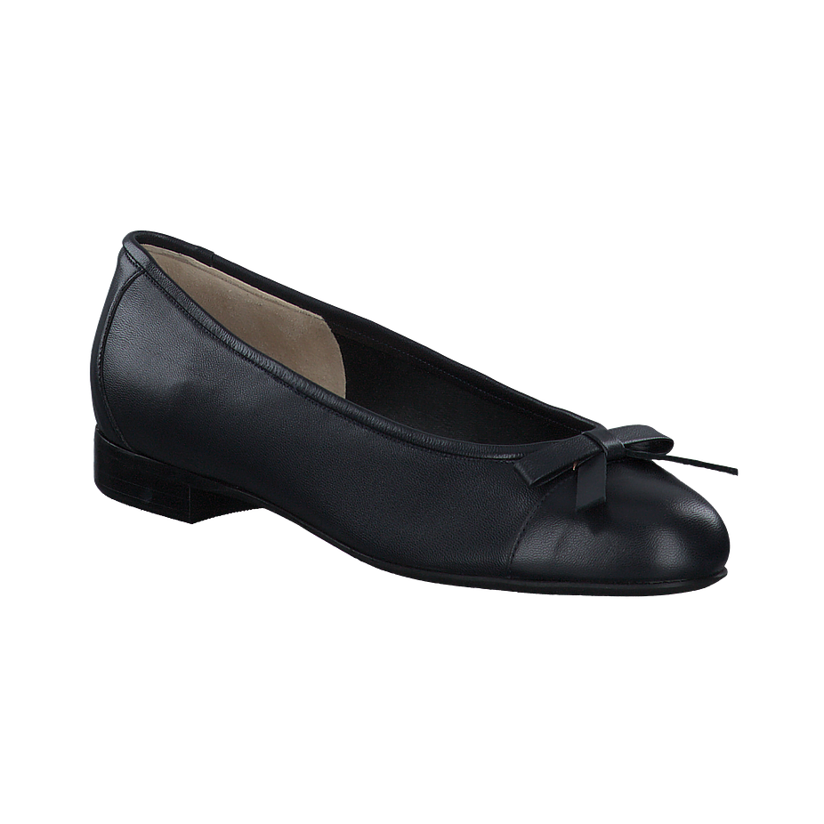 Preis inkl. MwSt.Entdecken Sie die zeitlose Eleganz dieser Ballerinas für Damen, die sich durch ihr klassisches Design in tiefem Schwarz auszeichnen. Die feine Schleife auf der Vorderseite verleiht dem Schuh eine feminine Note, während das glatte Leder einen Hauch von Raffinesse bietet. Die schlanke Silhouette und der dezente Absatz machen diesen Schuh zu einem vielseitigen Begleiter für verschiedene Anlässe, von formellen Veranstaltungen bis hin zu entspannten Ausflügen.