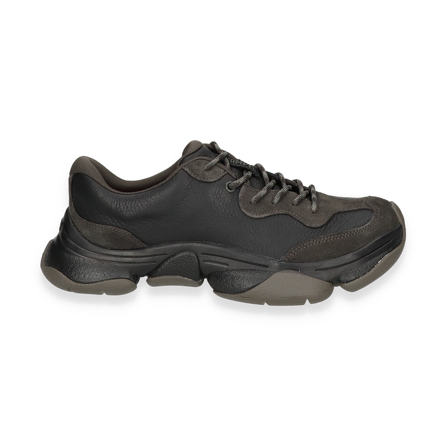 Der CAMPER KARST Sneaker für Herren präsentiert sich in einem eleganten Schwarz, das sowohl Stil als auch Vielseitigkeit verkörpert. Das Design kombiniert glatte Lederoberflächen mit subtilen Texturdetails, die dem Schuh eine moderne und dynamische Ästhetik verleihen. Die robuste Gummisohle bietet nicht nur hervorragenden Halt, sondern auch eine markante visuelle Präsenz. Die sorgfältige Verarbeitung und die dezente Farbgebung machen diesen Sneaker zu einem idealen Begleiter für urbane Abenteuer und alltägliche Erkundungen.