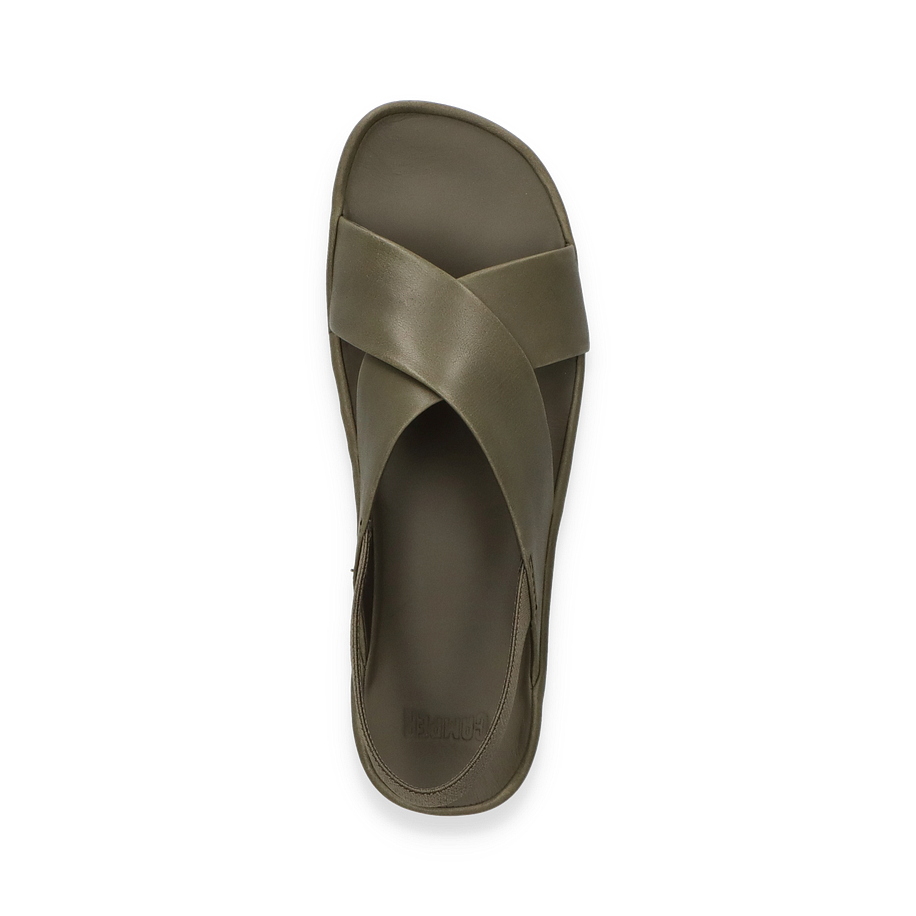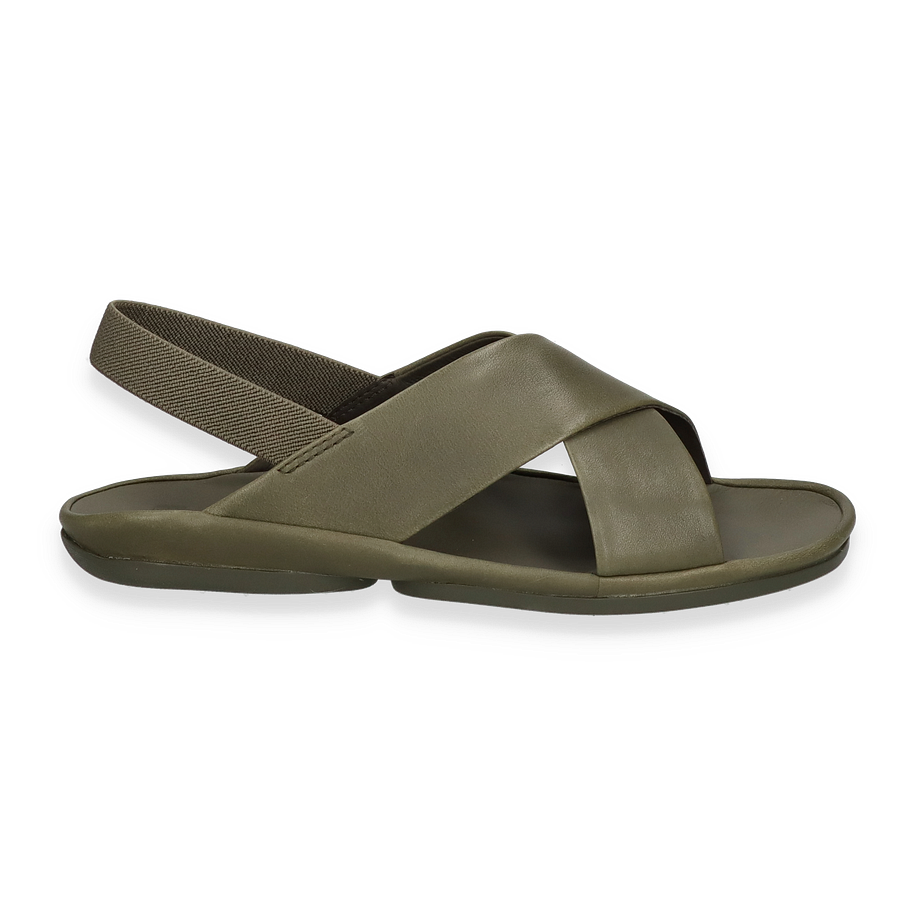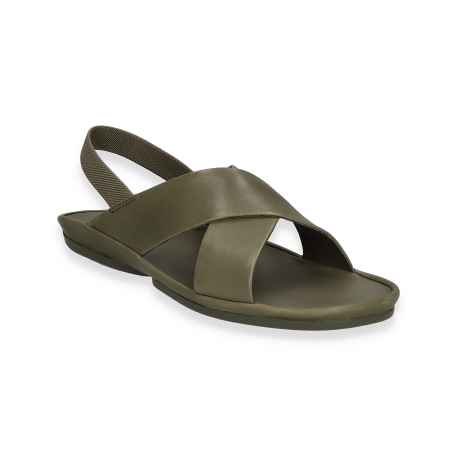 Die Camper RIGHT ISLA Sandalen für Damen präsentieren sich in einem eleganten Dunkelgrün, das sowohl stilvoll als auch vielseitig ist. Die gekreuzten Riemen aus hochwertigem Leder verleihen den Sandalen einen modernen und zugleich zeitlosen Look. Der elastische Fersenriemen sorgt für einen sicheren Halt und optimalen Tragekomfort. Diese Sandalen sind die perfekte Wahl für warme Tage, an denen Stil und Bequemlichkeit gefragt sind.